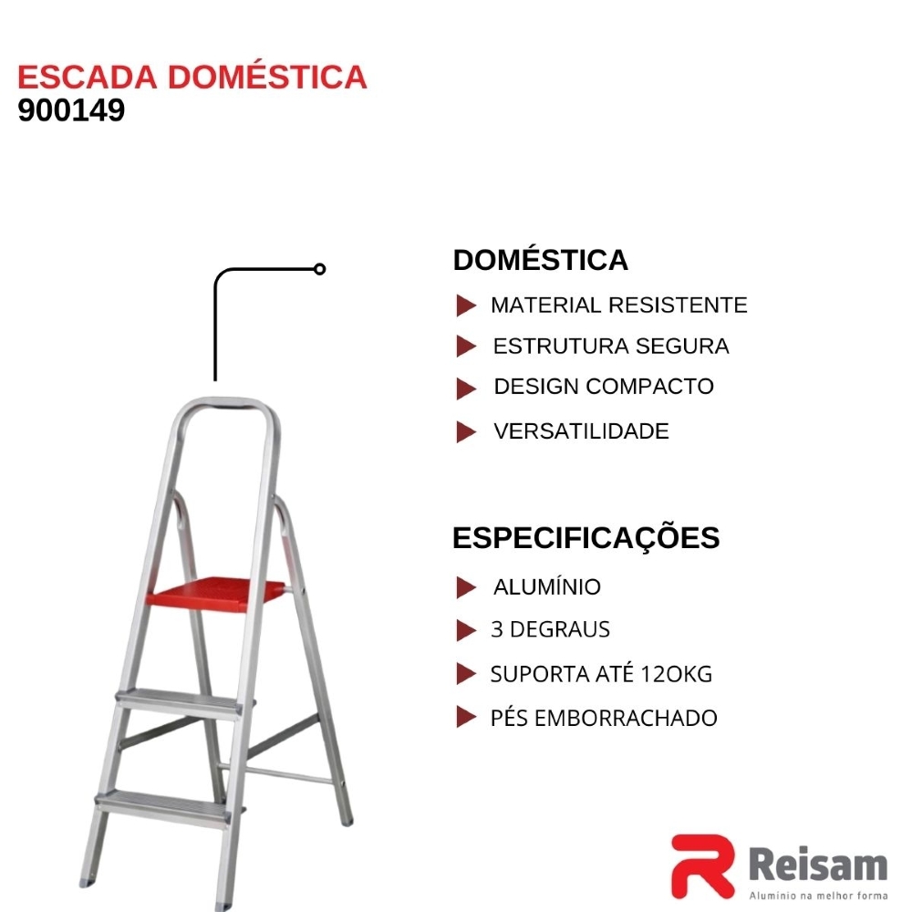 Escada de Alumínio Doméstica 3 Degraus - Reisam