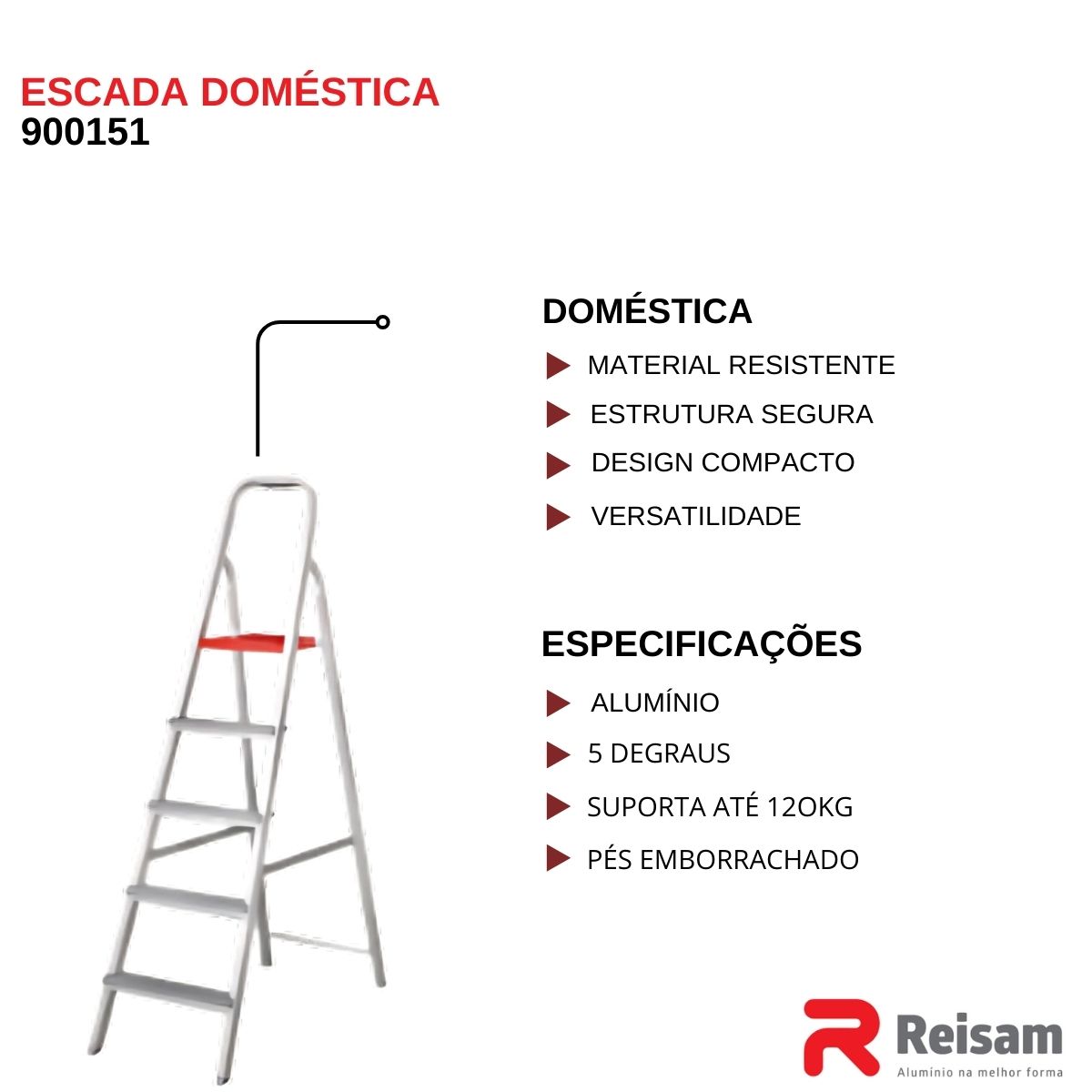 Escada de Alumínio Doméstica 5 Degraus - Reisam