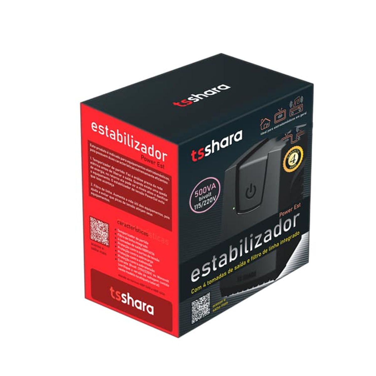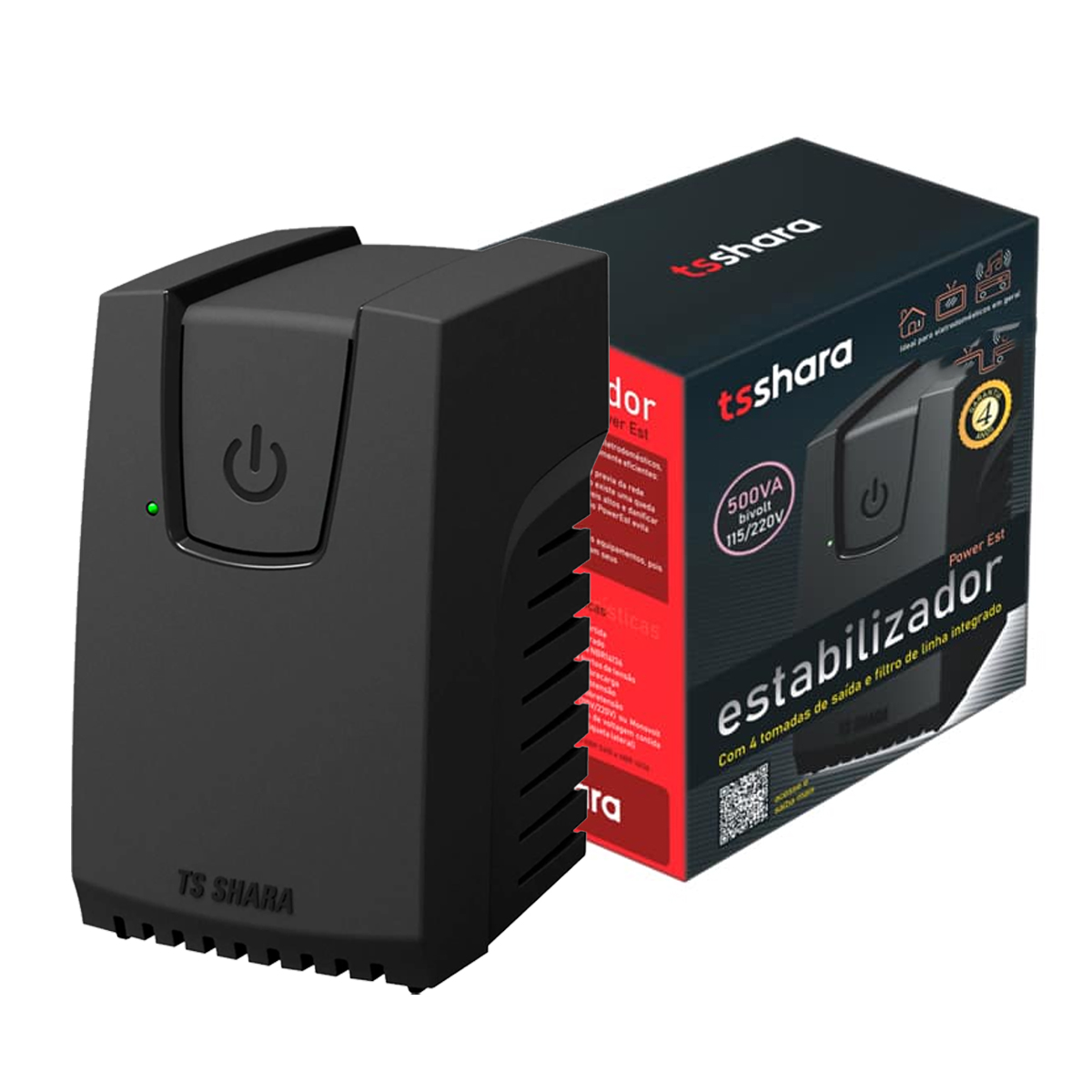 Estabilizador De Tensão Powerest 500Va 4 Tomadas Saída 500V Preto 50/60Hz 9116 - Ts Shara