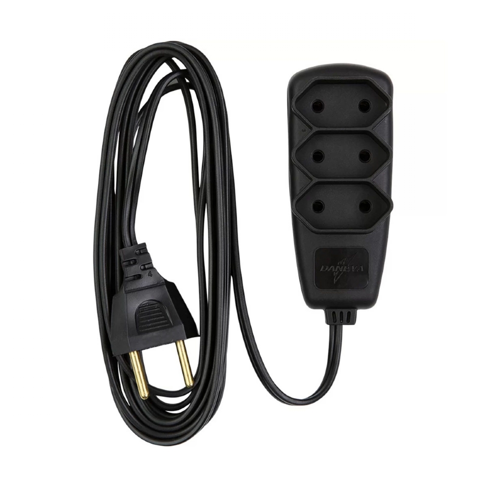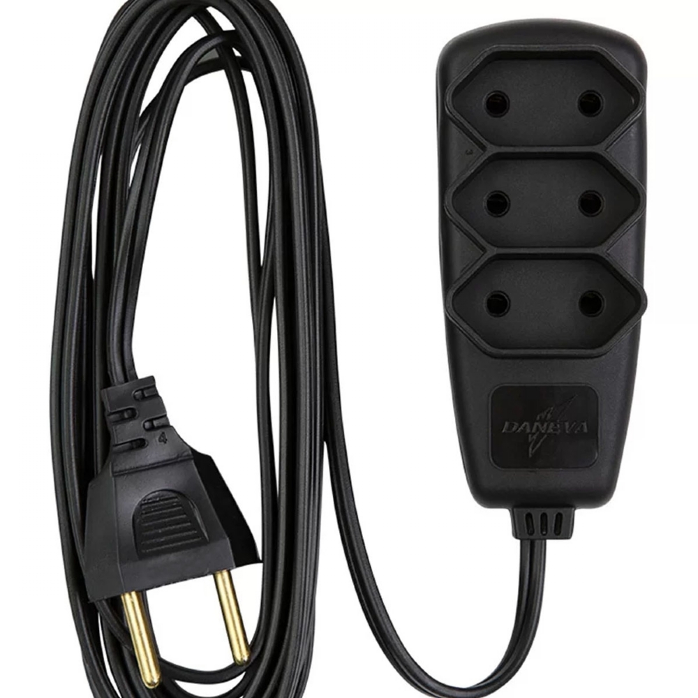 Extensão Elétrica 3 Tomadas 2 Polos 10A 250V 3 Metros Preto Daneva