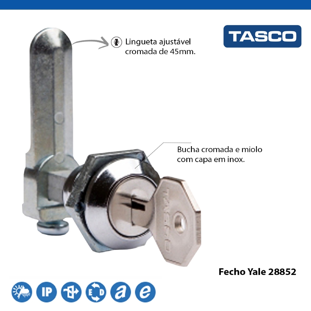 Há mais de 40 anos, a Tasco é uma empresa considerada referência no mercado, onde desenvolve e oferece produtos e soluções voltadas para os ramos de indústria, iluminação, automação industrial, eletroeletrônica, automobilístico, entre outros. Sua linha de itens é fabricada com a mais alta tecnologia, qualidade, segurança e praticidade, podendo oferecer ao consumidor, a melhor experiência. O Fecho Yale Cromado Lingueta Ajustável 45Mm Standart Ip40 28852, oferecido pela Tasco, garante os melhores resultados.