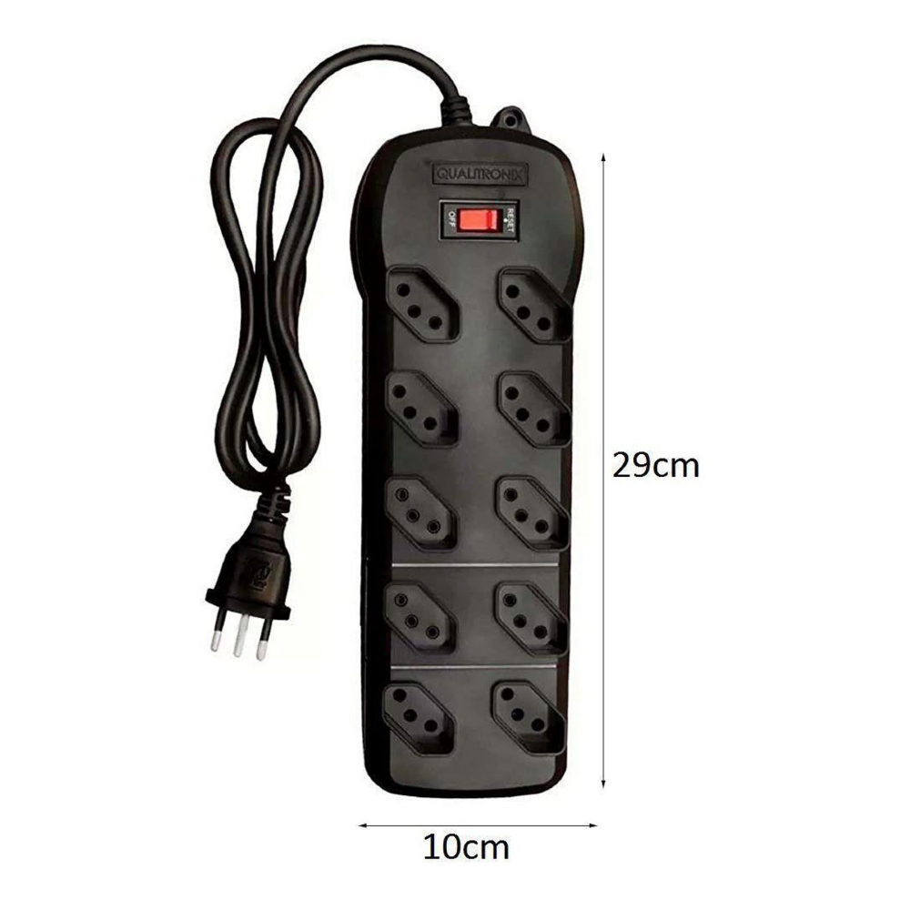 Filtro De Linha 10 Tomadas 10A 1,20 Metros Circuit Breaker Preto Qualitronix