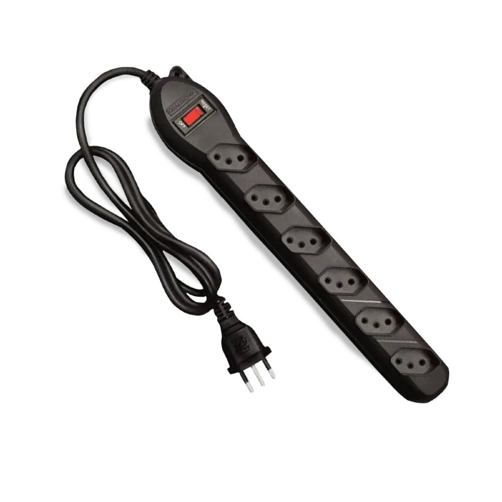 Filtro De Linha 6 Tomadas 10A 1,20 Metros Preto Circuit Breaker Qualitronix