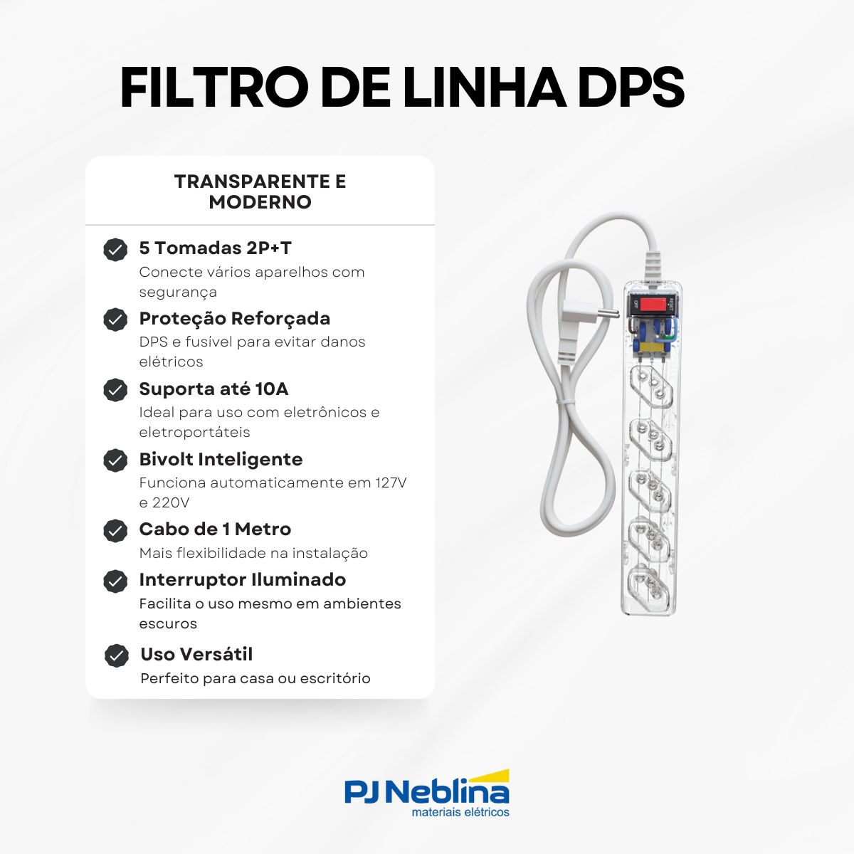 Filtro de Linha 5 Tomadas 10A Bivolt com Fusível - Clamper