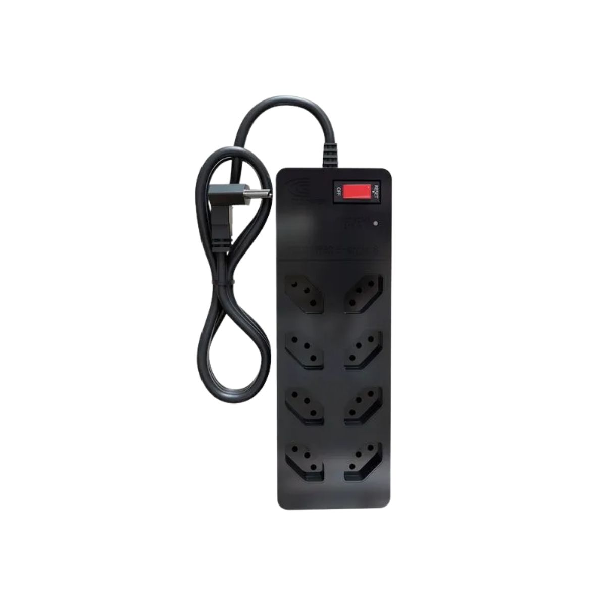 • Tomadas 2P+T (Pino redondo e Terra): 8 tomadas com proteção contra choques elétricos, adequadas para diversos tipos de dispositivos, como computadores, equipamentos de áudio, TVs e outros eletrodomésticos.