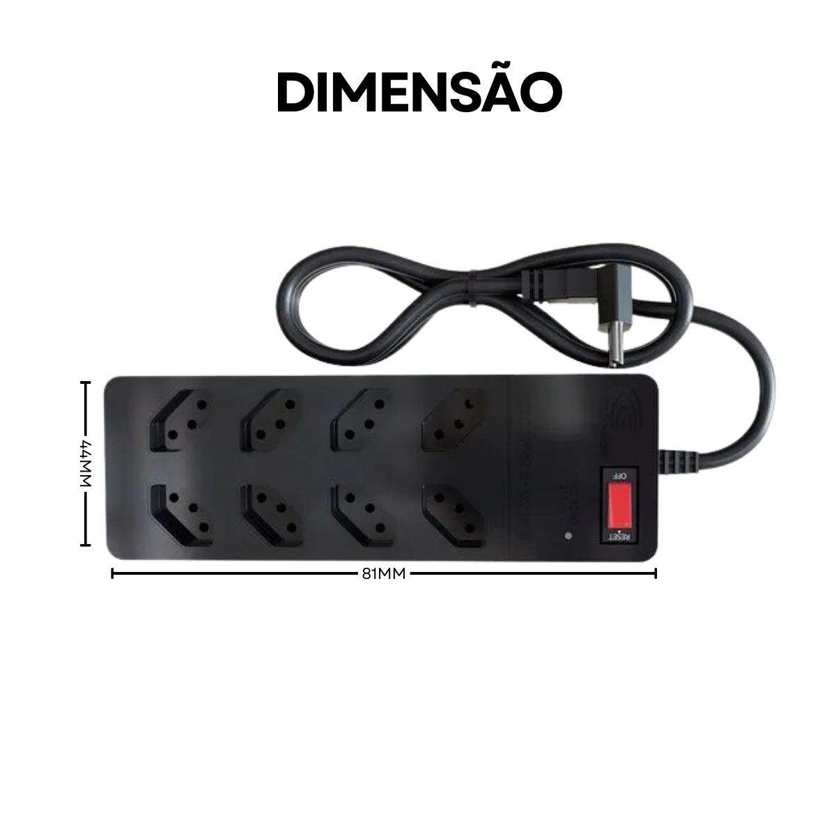 • Proteção contra surtos: O filtro de linha vem com varistores MOV (Metal Oxide Varistor), que protegem contra picos de tensão, raios e outros surtos elétricos, garantindo que os equipamentos conectados permaneçam seguros.