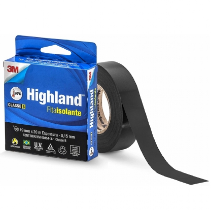 Fita Adesiva Isolante Highland 19mmx20m Preto 750v 3M Do Brasil