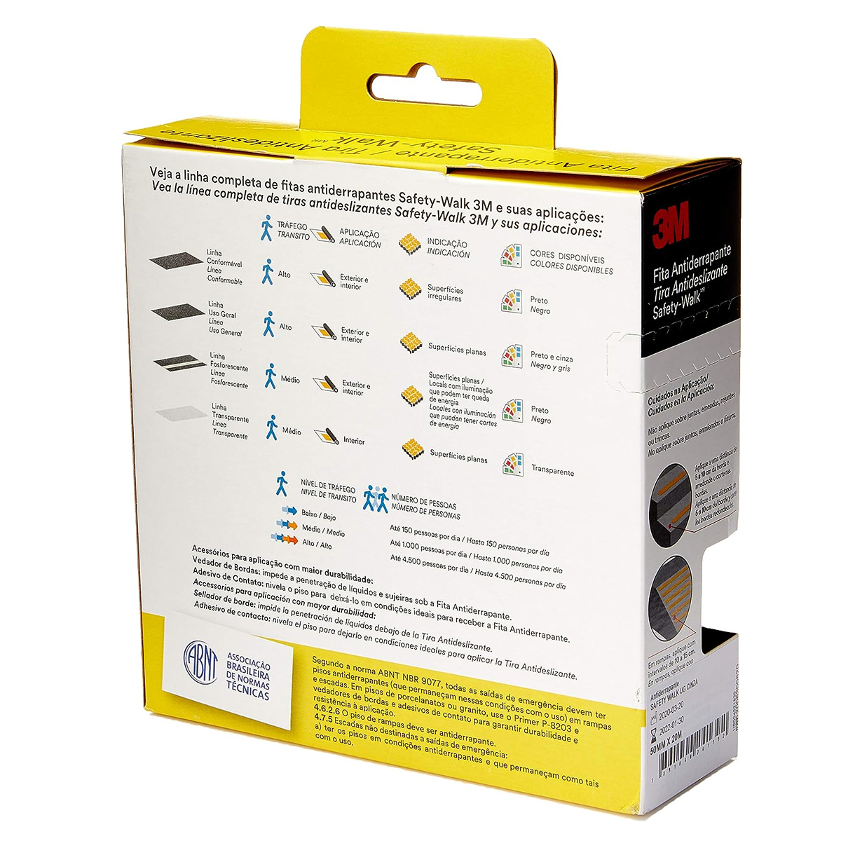 A Fita Antiderrapante de Uso Geral pode ser aplicada tanto em ambientes internos quanto externos, com alto tráfego de pessoas. Possui fácil aplicação e é indicada para utilização em superfícies planas como forma de sinalização visual. Além disso, a Fita Antiderrapante Safety Walk é durável, resiste a mofo e bolor e não racha ou descasca com o uso.