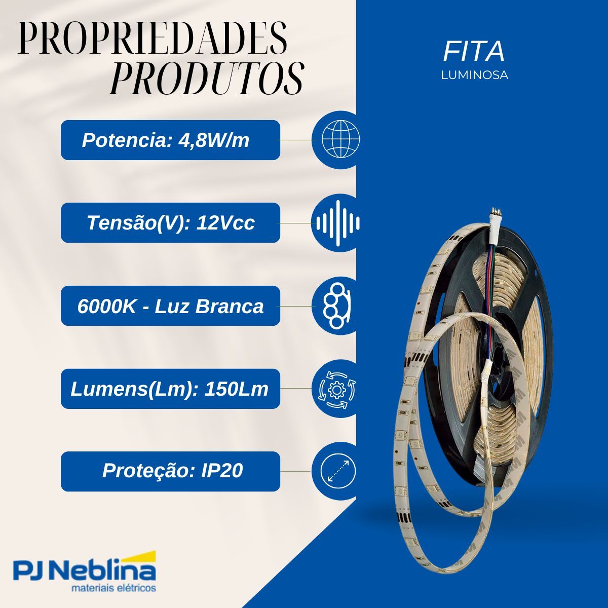 Fita Led 2835 4,8w/m 12v 6000k Branco Frio 150lm/m (rl C/5m)