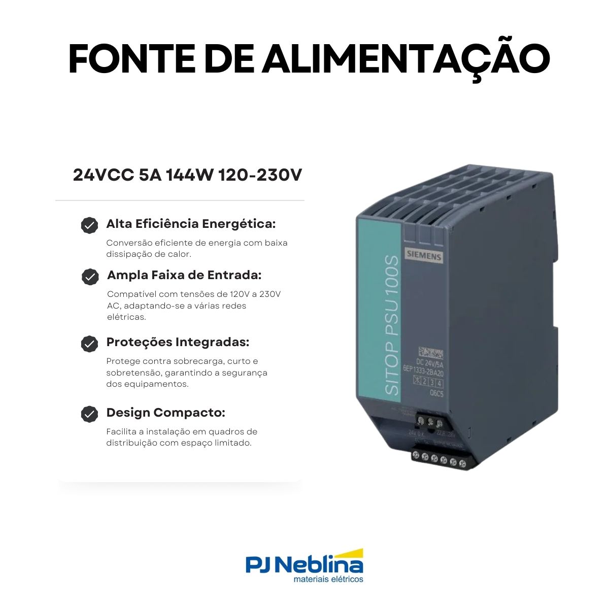 Fonte de Alimentação 24Vcc 5A 144W 120-230V Estabilizada - Siemens