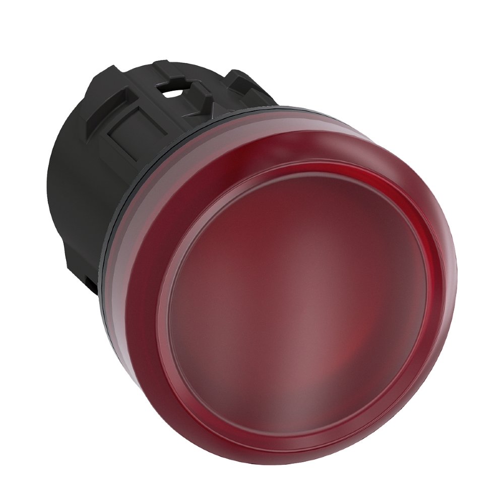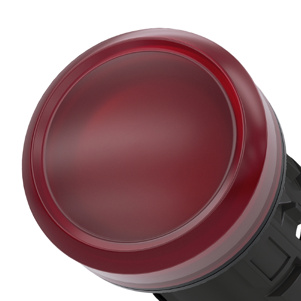 Indicador luminoso, 22 mm, redondo, plástico, vermelho, lente, plano