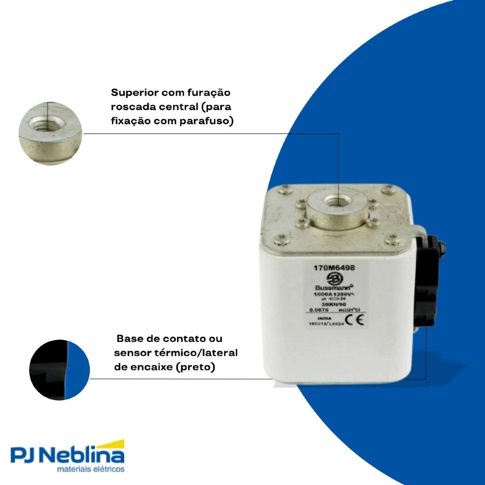 • Tipo: NH Ultra Rápido (Tipo gR ou aR). A designação "NH" se refere ao formato físico e padrão de instalação (normalmente em base porta-fusível). "Ultra Rápido" (gR ou aR) indica que ele é otimizado para proteger semicondutores, que são muito sensíveis a picos de corrente.