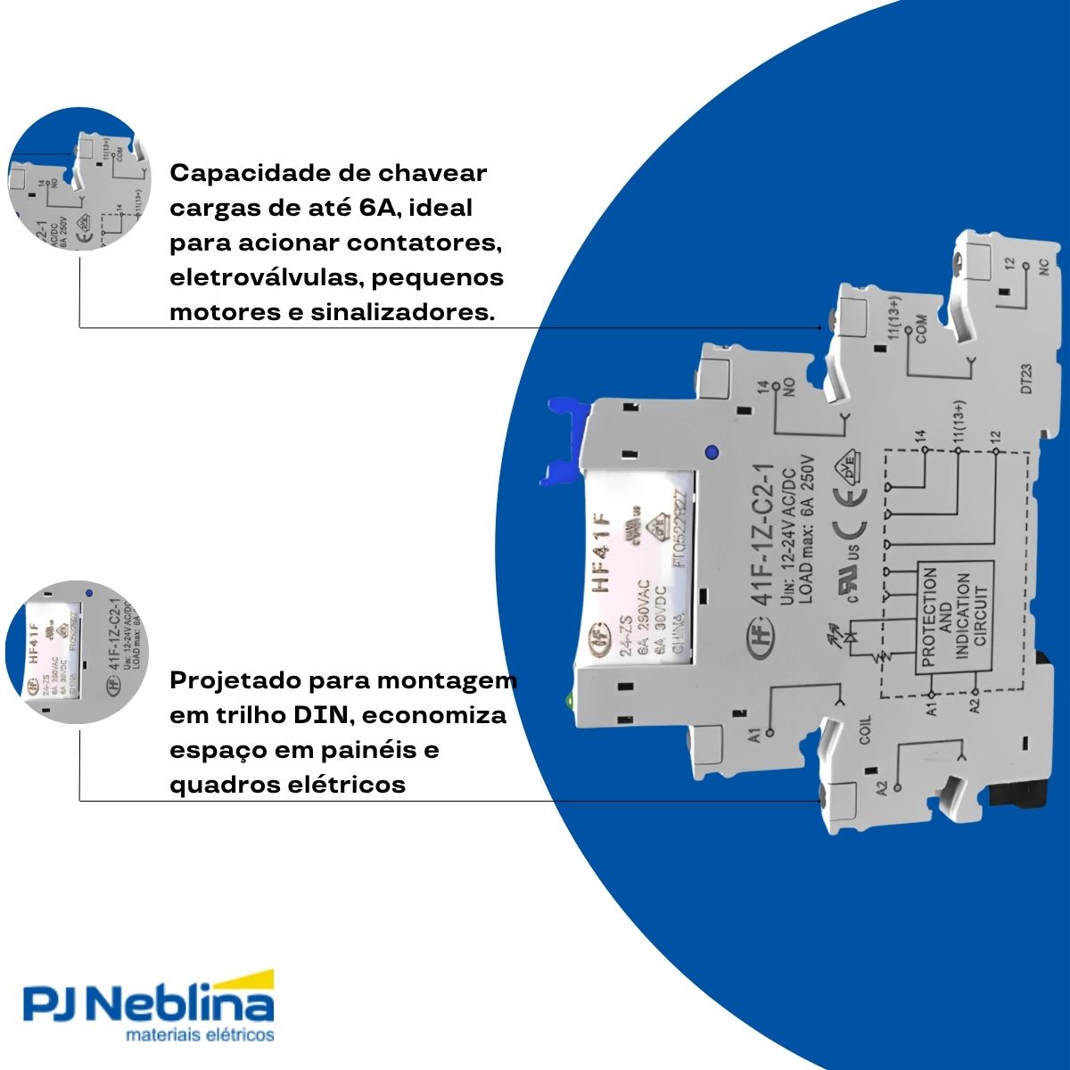 - Interface a relé compacta e robusta, ideal para aplicações industriais.