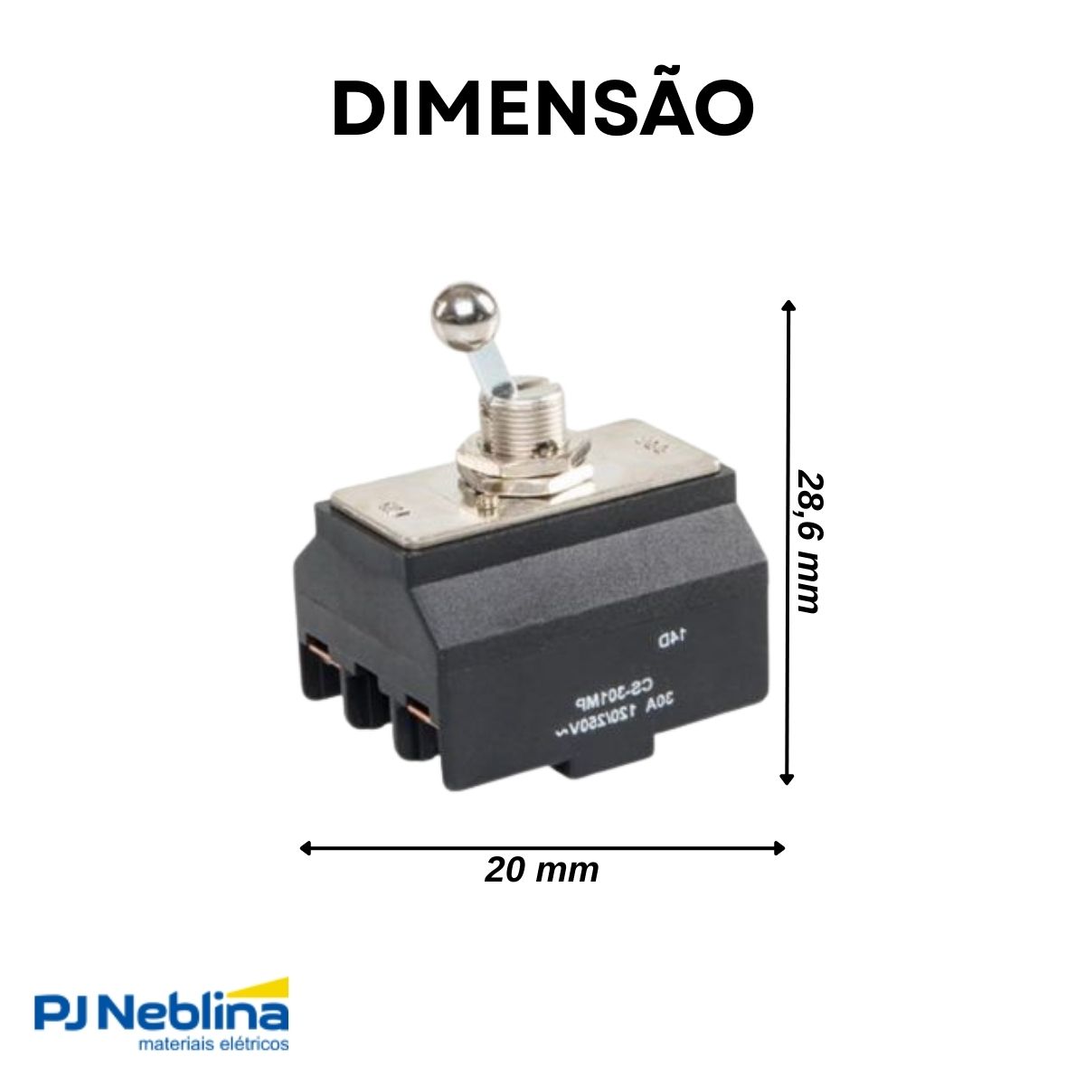 – Tipo: Interruptor de Alavanca (Toggle Switch). Possui um atuador em forma de alavanca para acionamento manual.