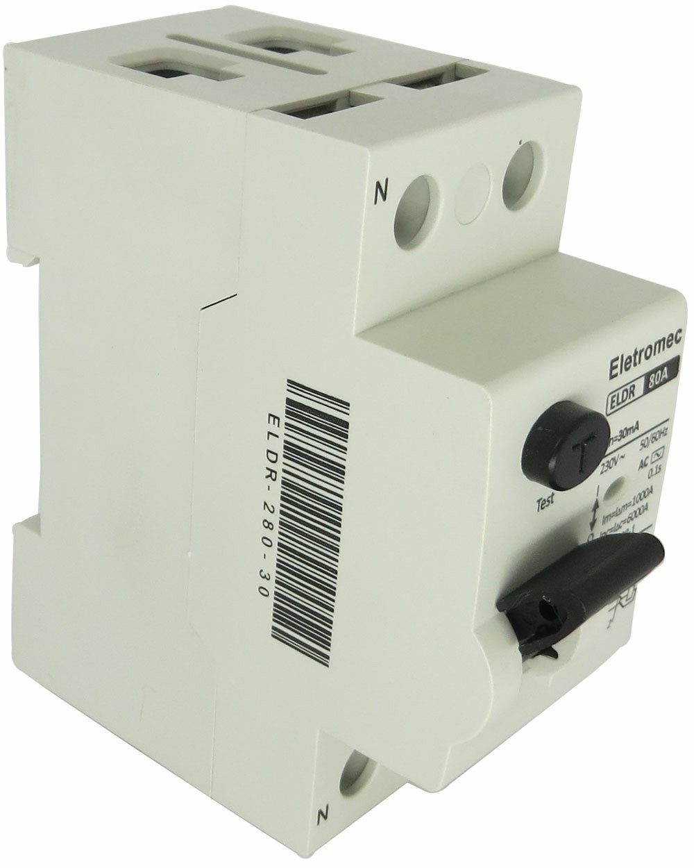 Linha ELDR interruptores diferenciais residuais tem proteção contra fuga, tipo eletromagnético com indicação de falha de fuga, suporte para instalação em trilho DIN (35mm) e possibilidade de conexão de cabos de entrada e saída pela parte superior ou inferior.