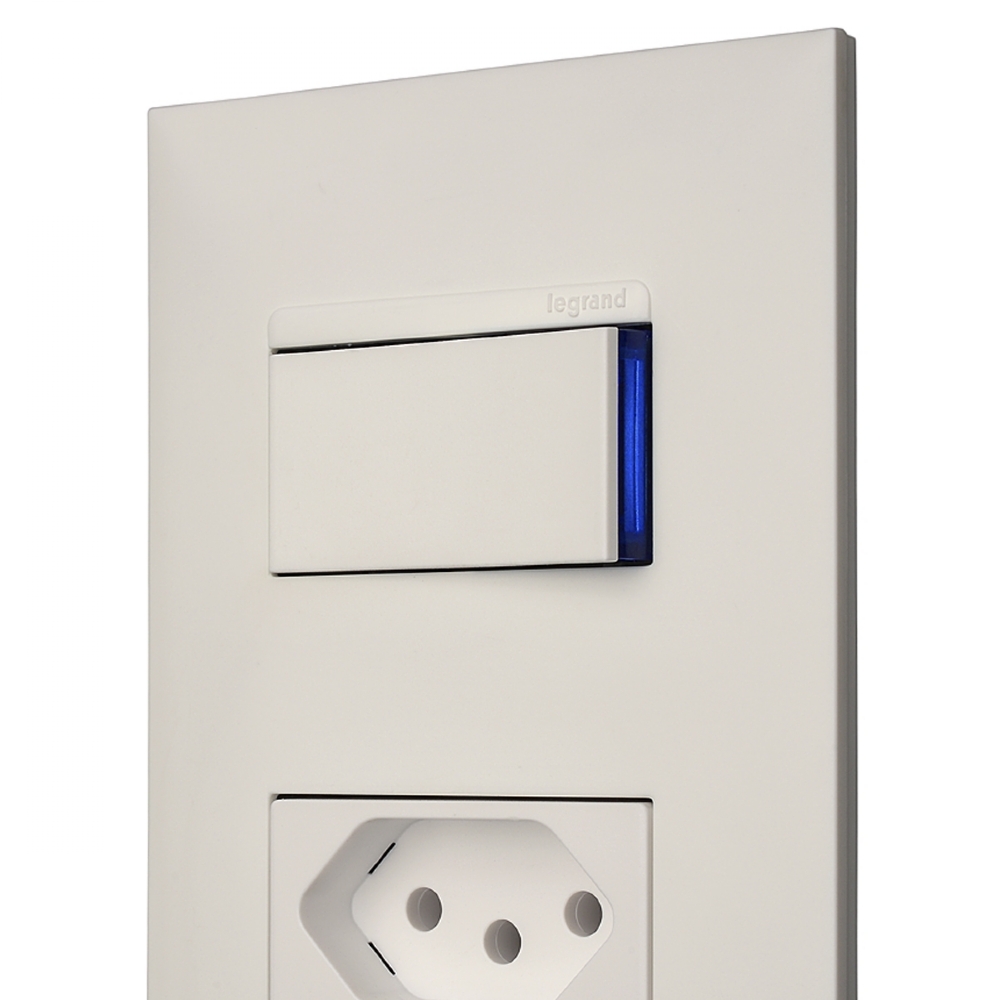Possui um visor lateral azul para trazer tecnologia e modernidade, sendo marca registrada da Legrand.