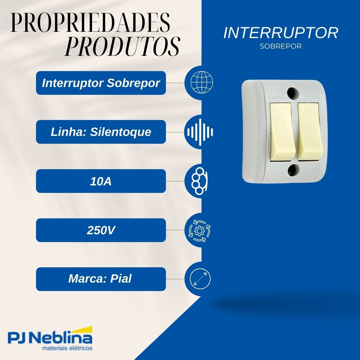 Interruptor Sobrepor 2 Paralelo 10A 250V Silentoque - Pial - Código Fabricante: 2504
