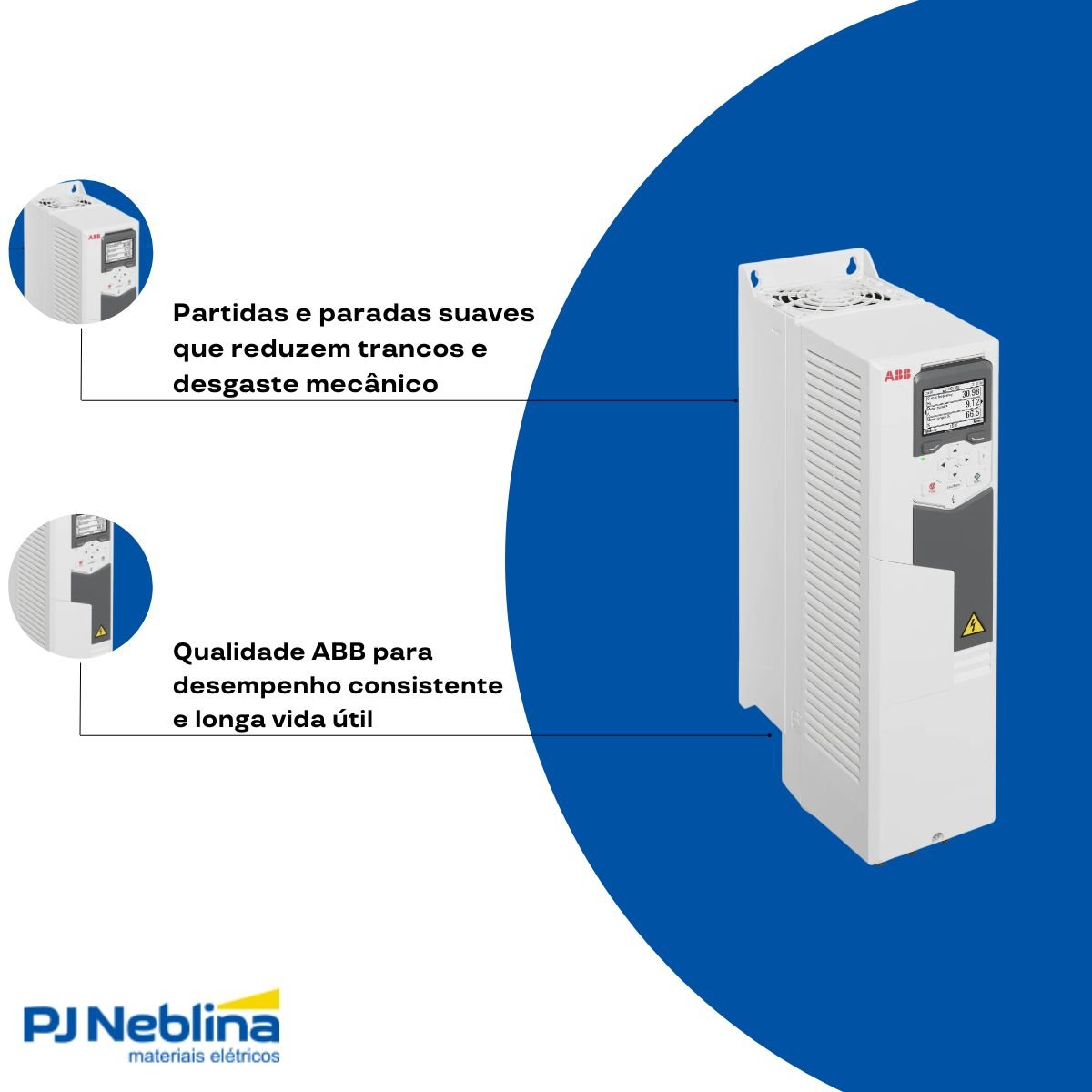 - Proteções típicas: sobrecorrente, sobretensão/subtensão, sobretemperatura e falhas de motor (varia por família ABB).