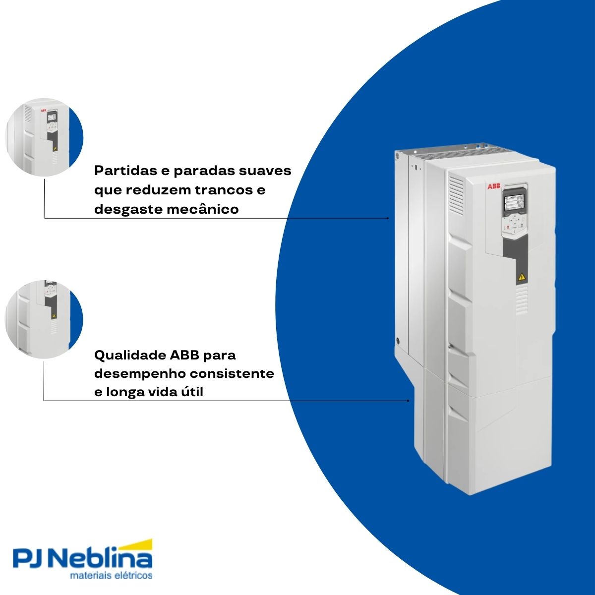 - Controle de velocidade do motor via variação de frequência/tensão, com recursos de proteção e diagnóstico típicos da linha.