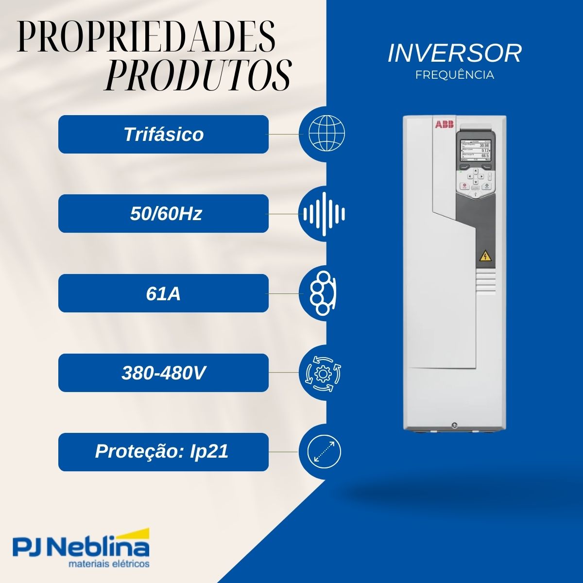 - Requer instalação conforme manual ABB: aterramento, EMC e ventilação.