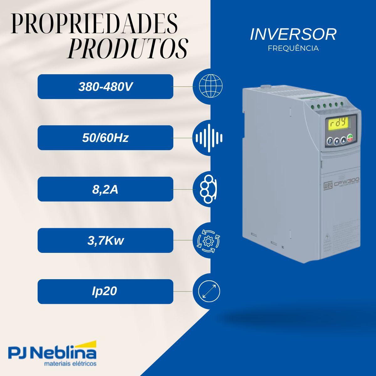 Inversor Frequência Trifásico 380-480V 50/60Hz 8,2A 3,7Kw - Weg - Código Fabricante: CFW300B08P2T4NB20