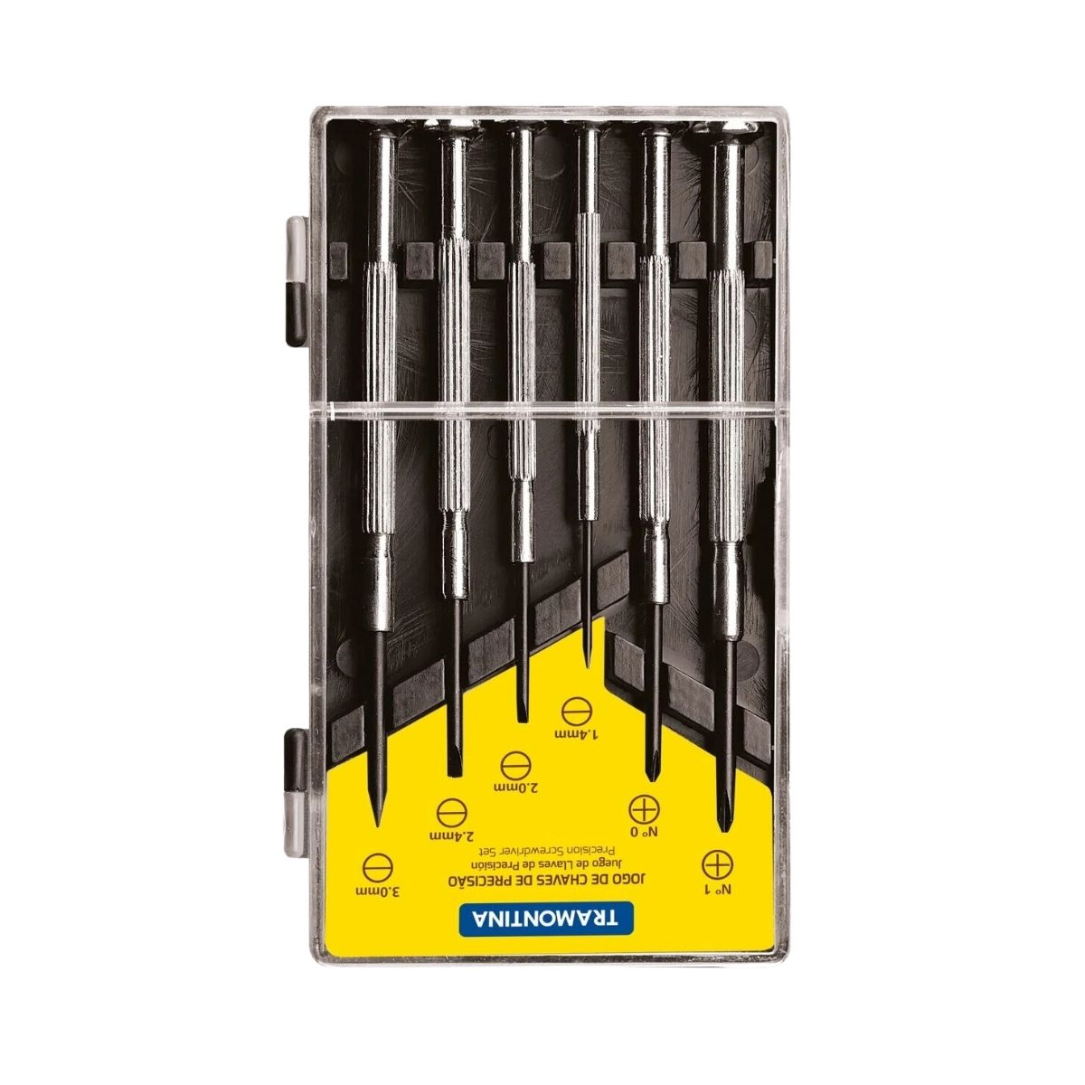 Jogo Chave Precisão 4 Com Ponta Chata E 2 Com Ponta Cruzada Haste Aço Cromo Vanádio 0-3Mm Embalagem 6 Peças 41905306 Tramontina