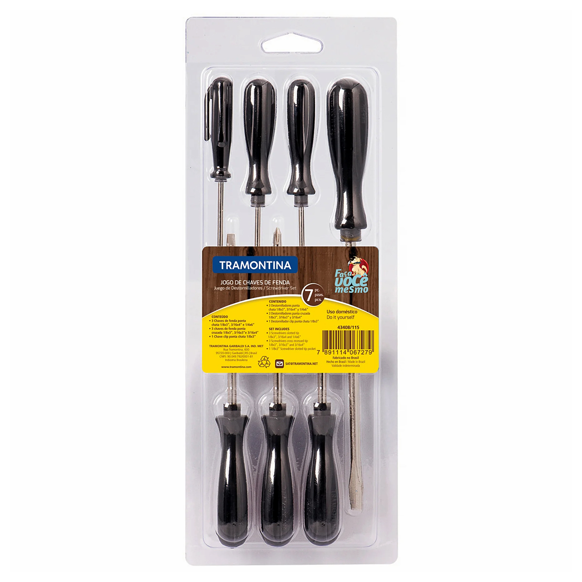 Jogo Chave De Fenda 7 Peças Ponta Cruzada/Chata e Clip Tramontina