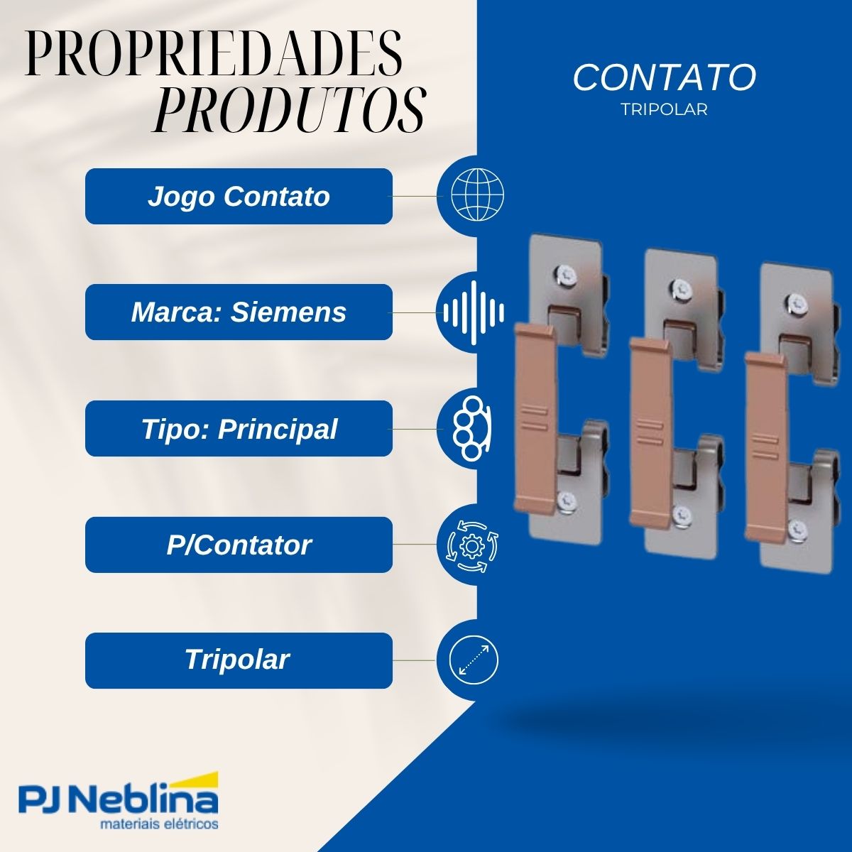 - Finalidade: Peça de reposição para os contatos de potência principais de contatores tripolares.