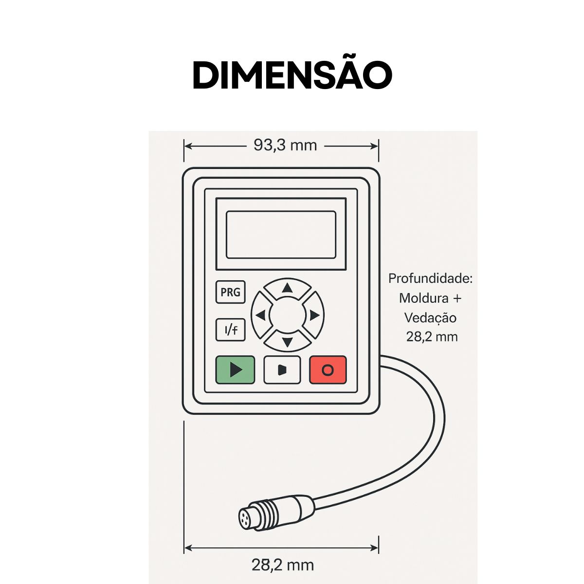 • Conjunto completo: Inclui moldura de montagem remota da IHM (Interface Homem-Máquina) e cabo de 7,5 metros, pronto para instalação.