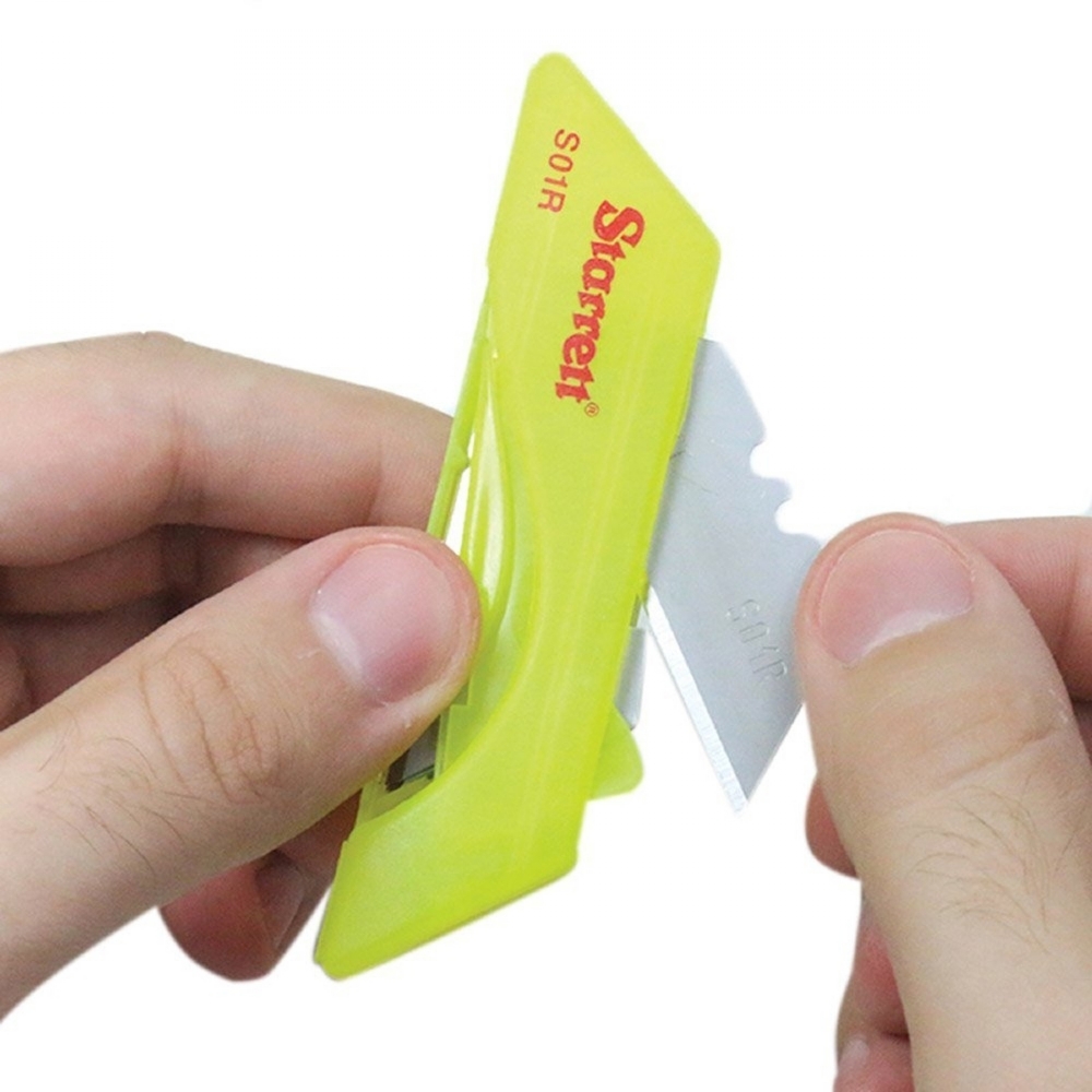 Na reposição, prefira as lâminas com a insuperável qualidade Starrett, que agora são fornecidas em estojo que proporciona absoluta segurança ao operador, uma vez que impede o contato das mãos com a aresta cortante.