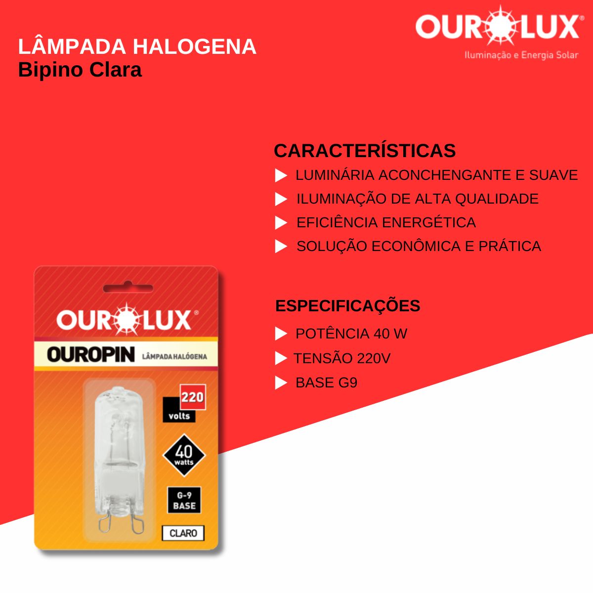 • Eficiência Energética: Embora tenha uma potência de 40W, a tecnologia halógena proporciona maior eficiência, com excelente qualidade de luz.
