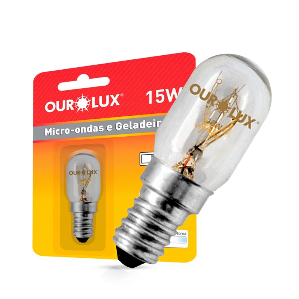 Lâmpada Incandescente Geladeira/Microondas 15W 127V E14 Luz Amarela Ourolux