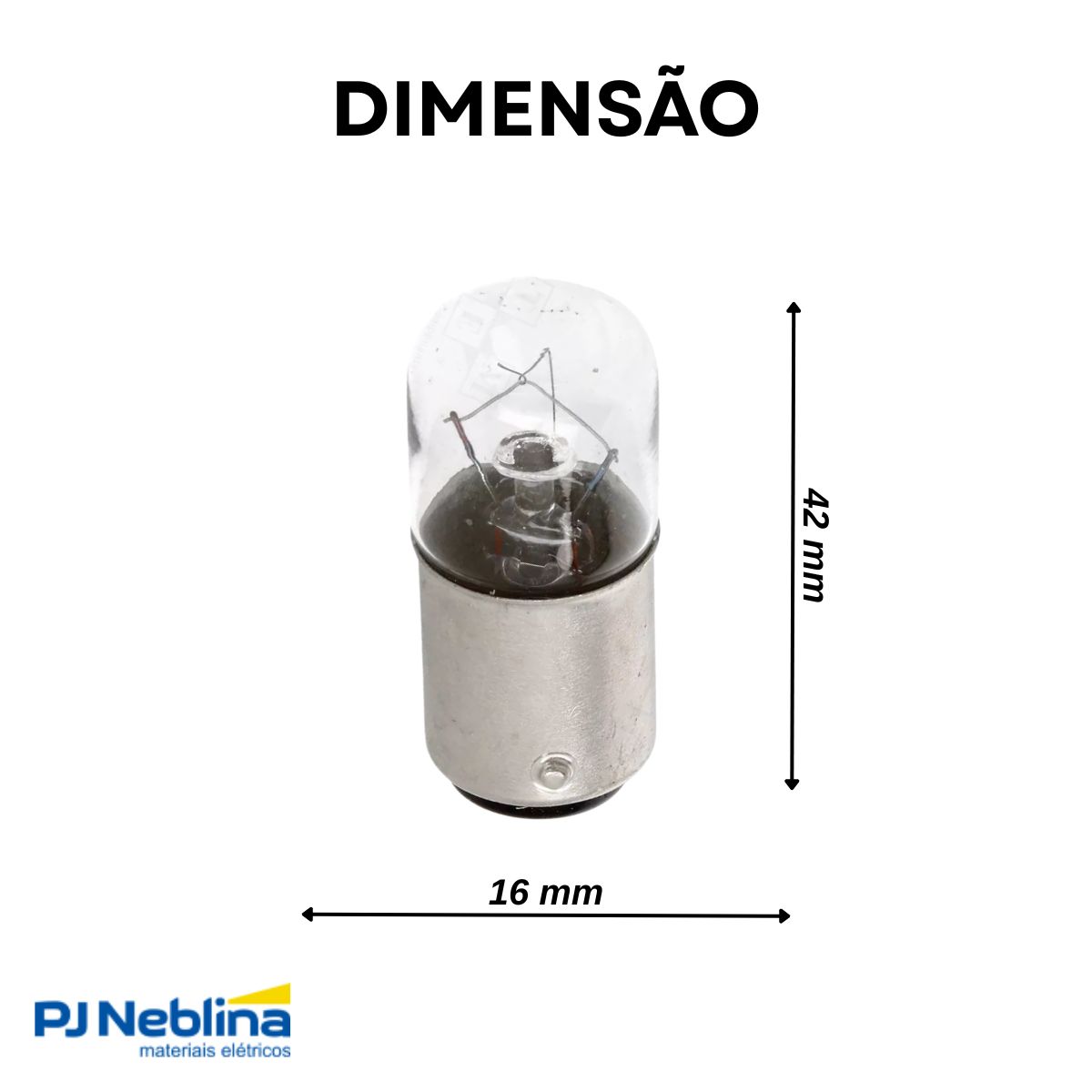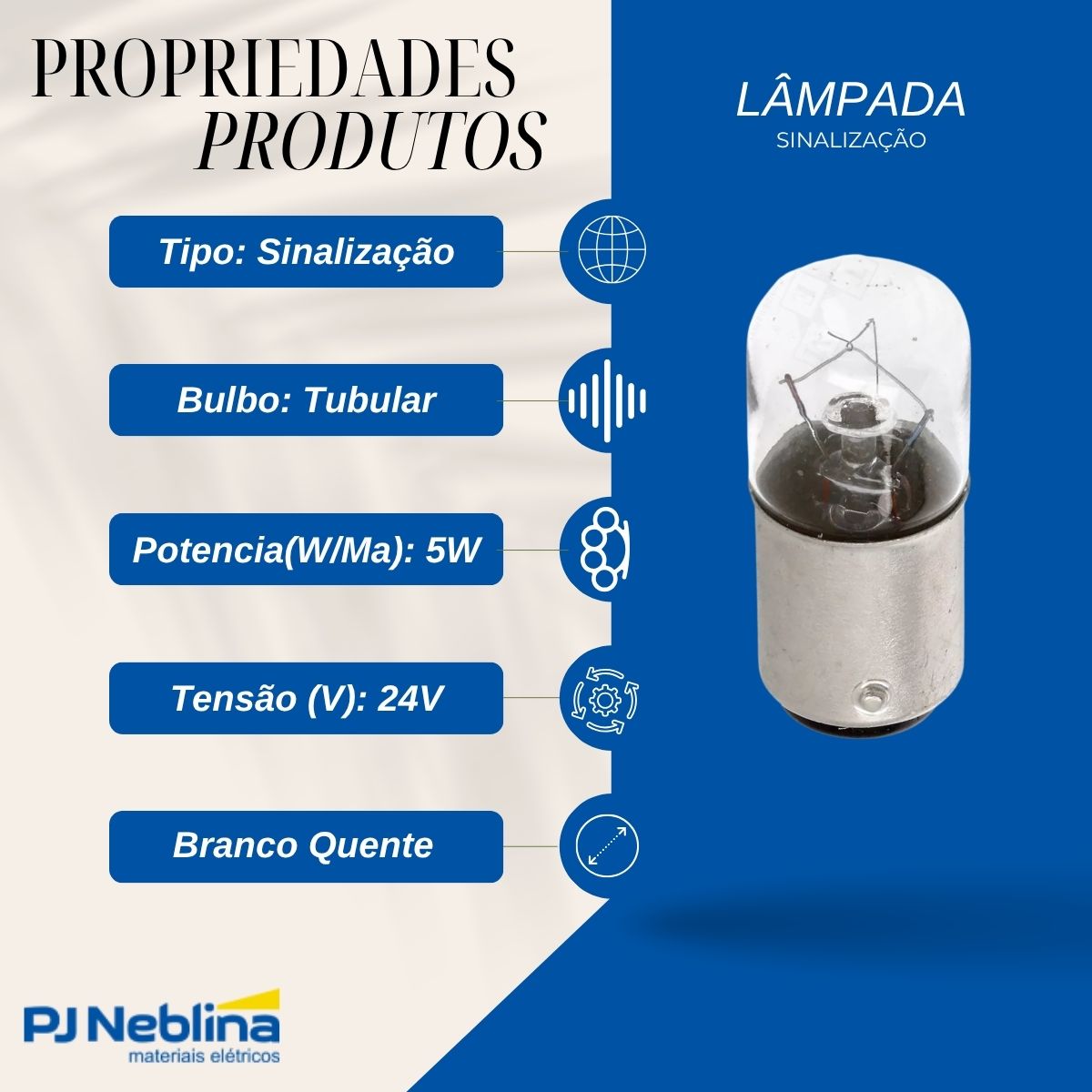- Durabilidade: Embora incandescente, é projetada para durar o tempo necessário em aplicações de sinalização, fácil de substituir.