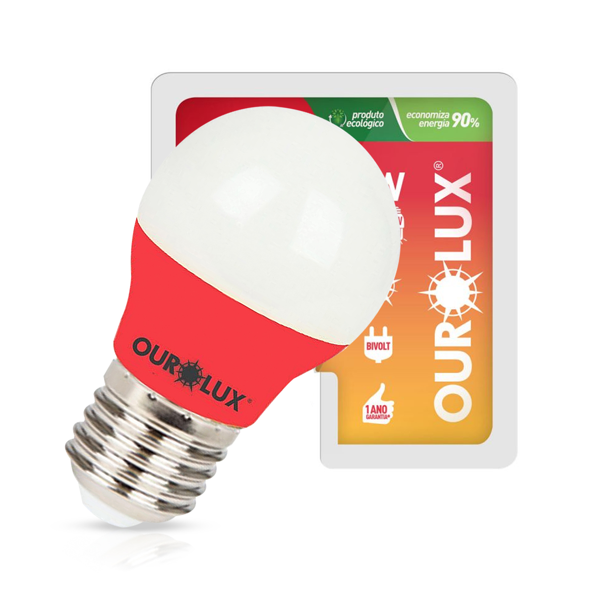 Lâmpada Led Bolinha G45 3W Bivolt E27 Vermelha Ourolux