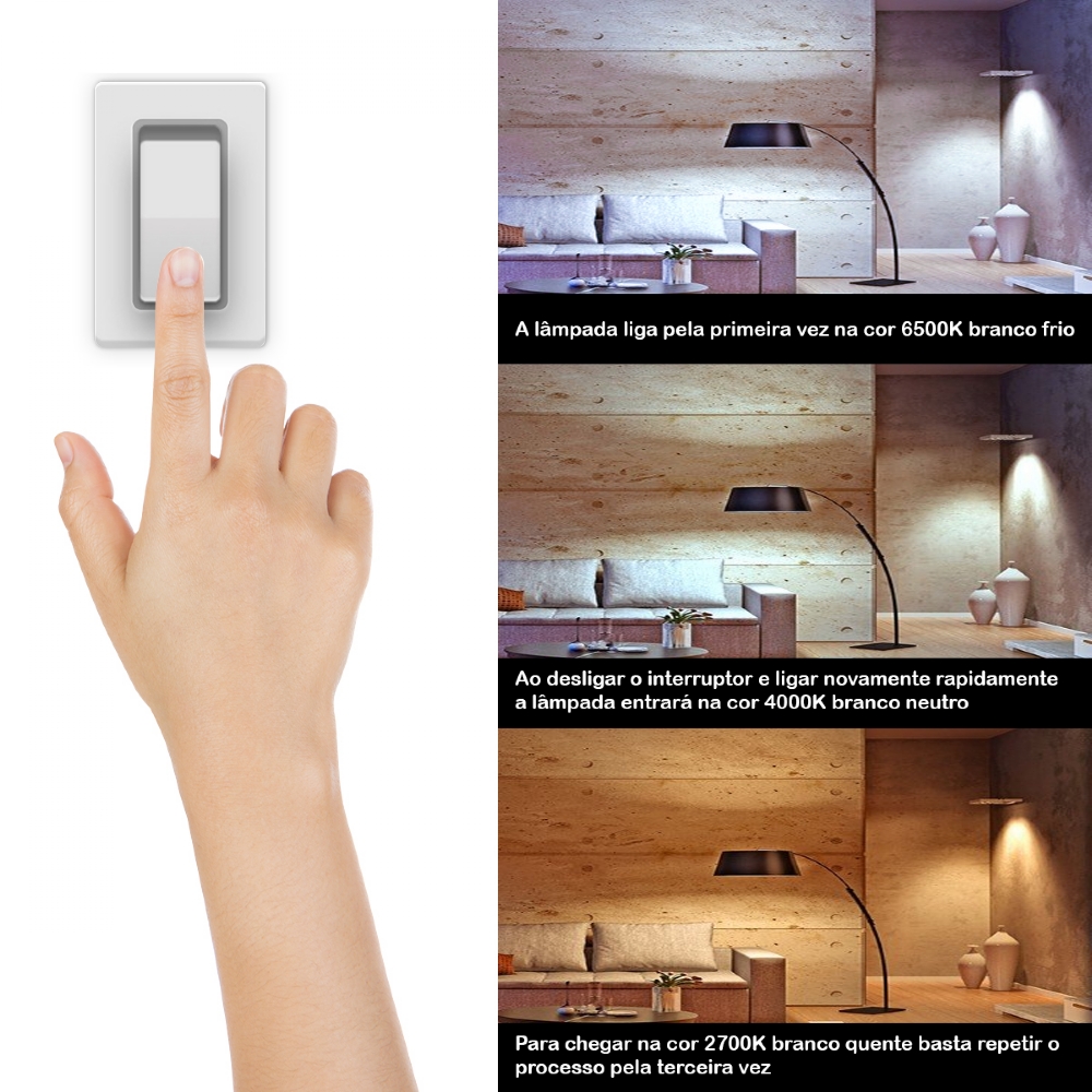 Lâmpada Led Inteligente Controled 3 Tons Branco 9W E27 Casa Inteligente Ourolux