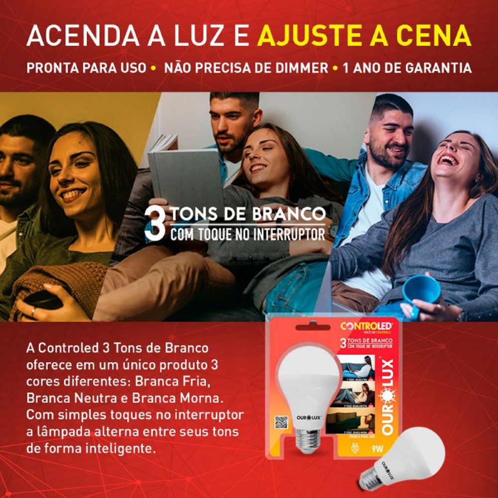 Empresa com mais de 25 anos de existência, especializada em iluminação sendo referência e uma entre os líderes no cenário do Brasil, a Ourolux possui uma grande diversidade de produtos, com design moderno, possuindo alta qualidade e garantindo segurança. A Ourolux oferece o maior alto nível de comprometimento e qualidade com a Lâmpada Led Inteligente Controled 3 Tons Branco 9W garantindo a satisfação do nosso cliente.
