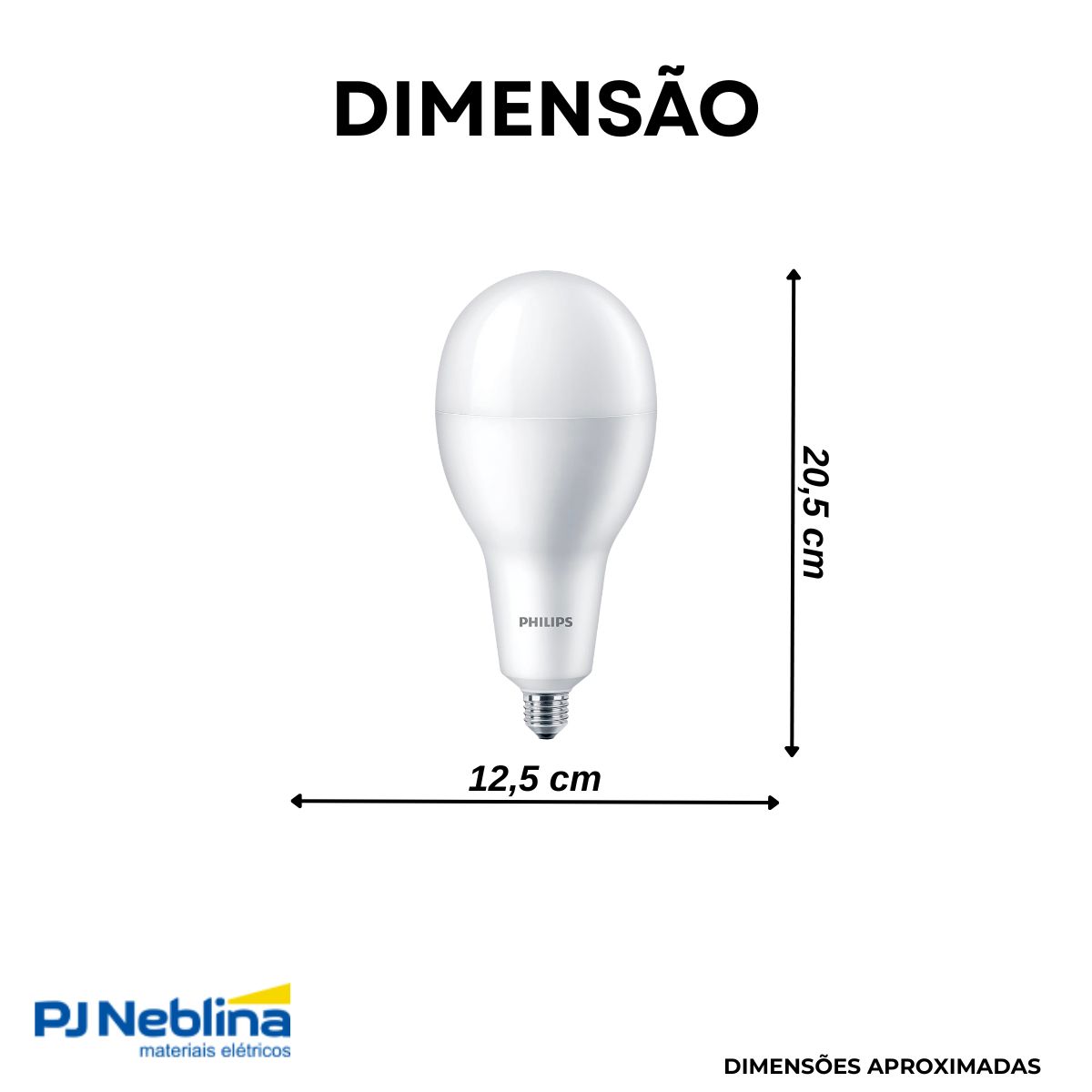 - Lâmpada LED Bulbo de alta potência, formato A125, ideal para grandes ambientes.