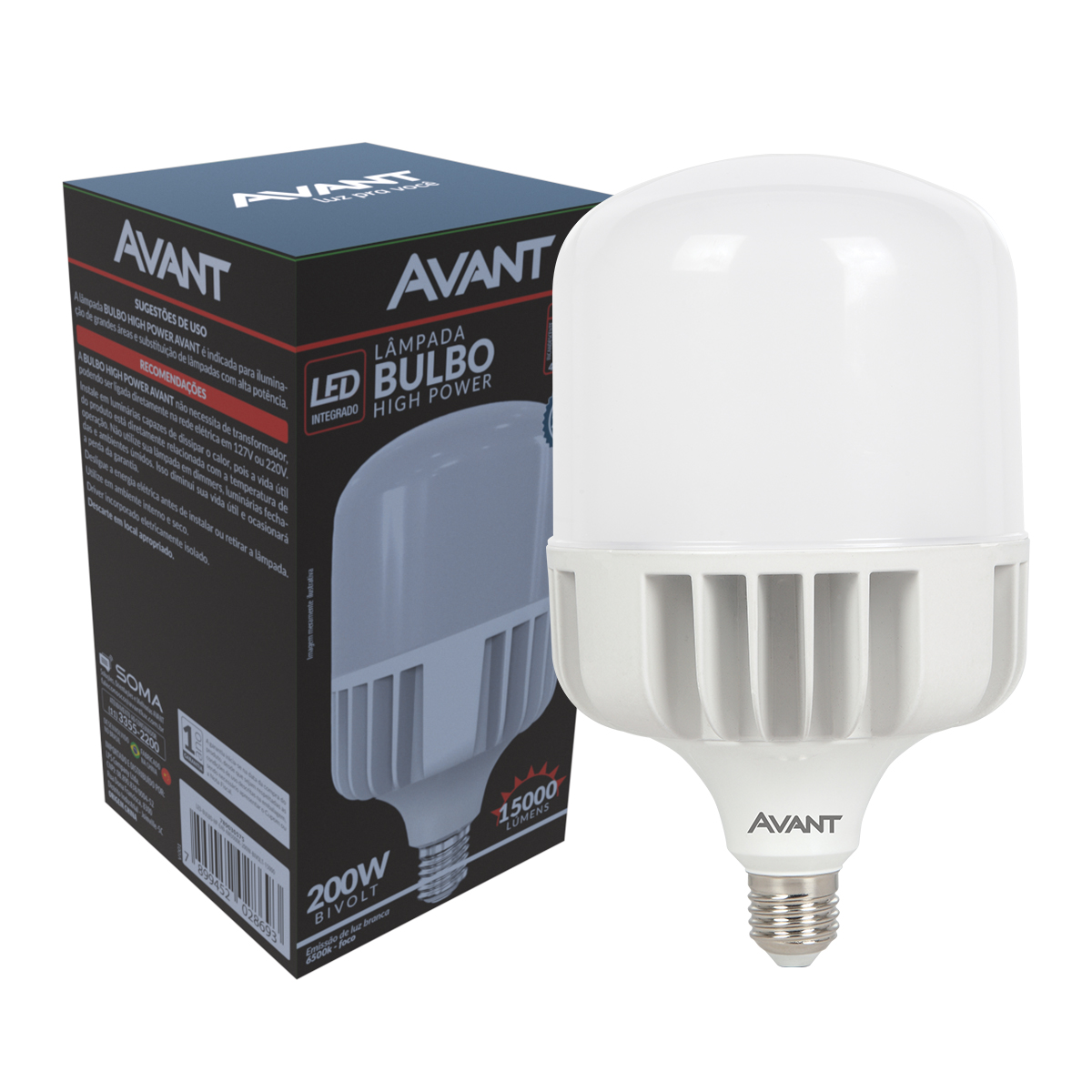 Lâmpada Led Bulbo Alta Potência T 200W Bivolt E40 6500K Luz Branca 15000Lm 25000H 160x305mm Avant