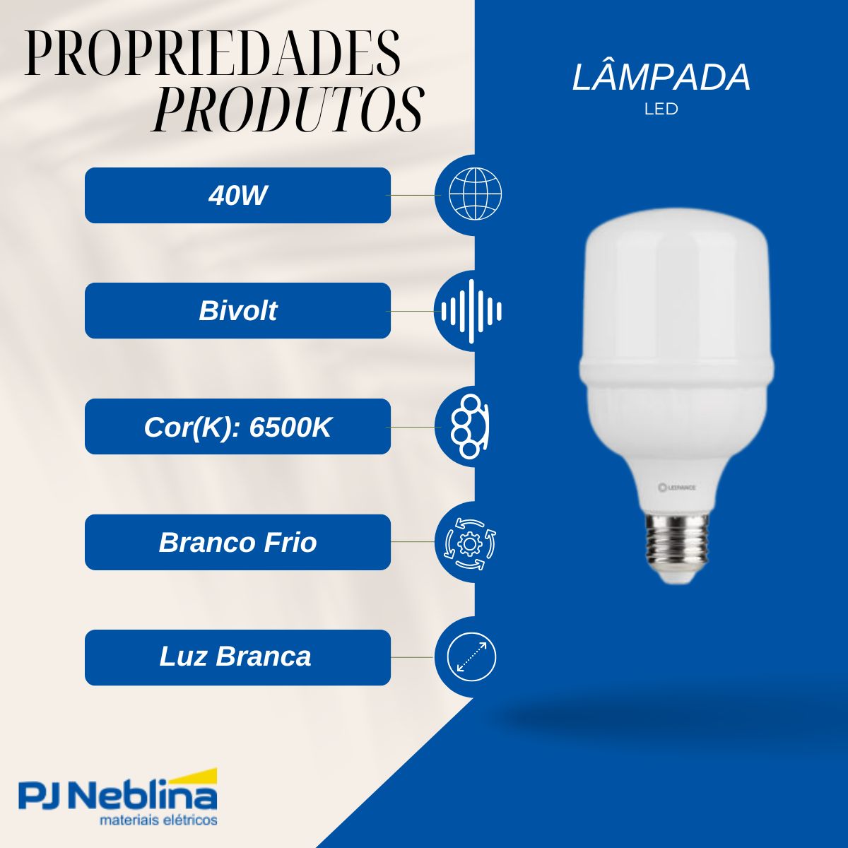 Lâmpada Led Bulbo Alta Potencia T 40W Bivolt E27 6500K Branco Frio Luz Branca 3200Lm - Ledvance - Código Fabricante: 7023083