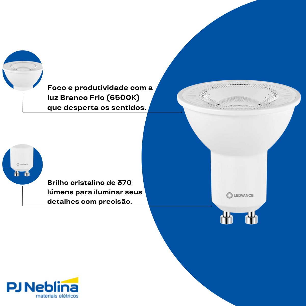 - Temperatura de cor 6500K (Branco Frio).
