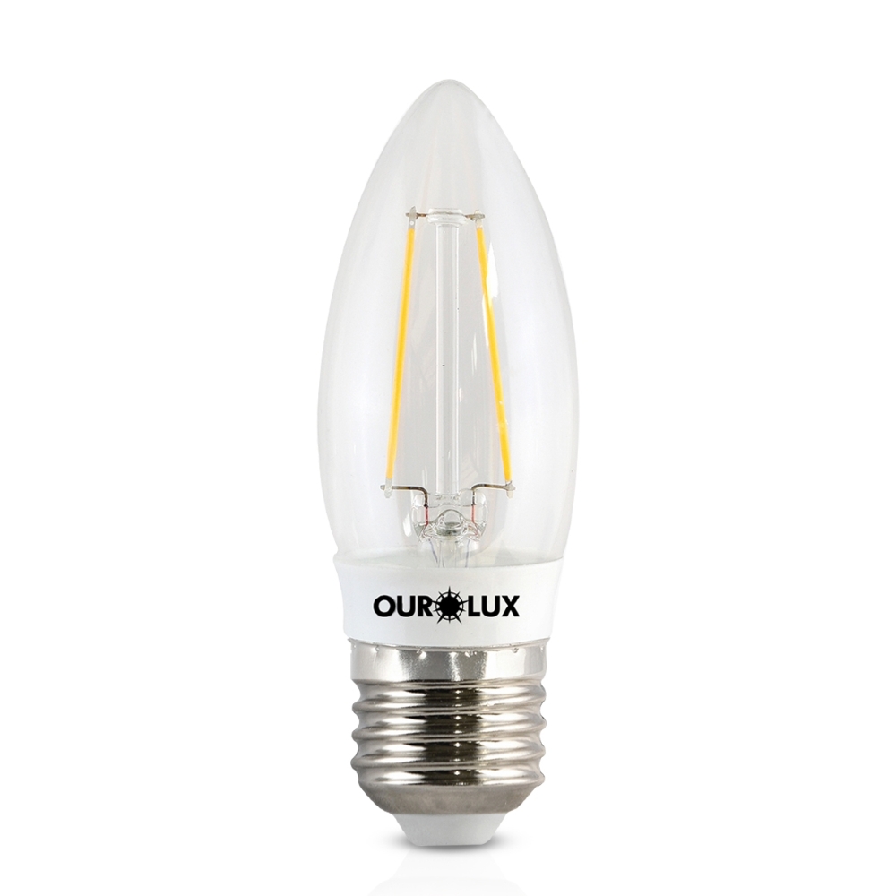 Lâmpada Led Filamento Vela 3W Bivolt E27 2700K Luz Amarela Ourolux