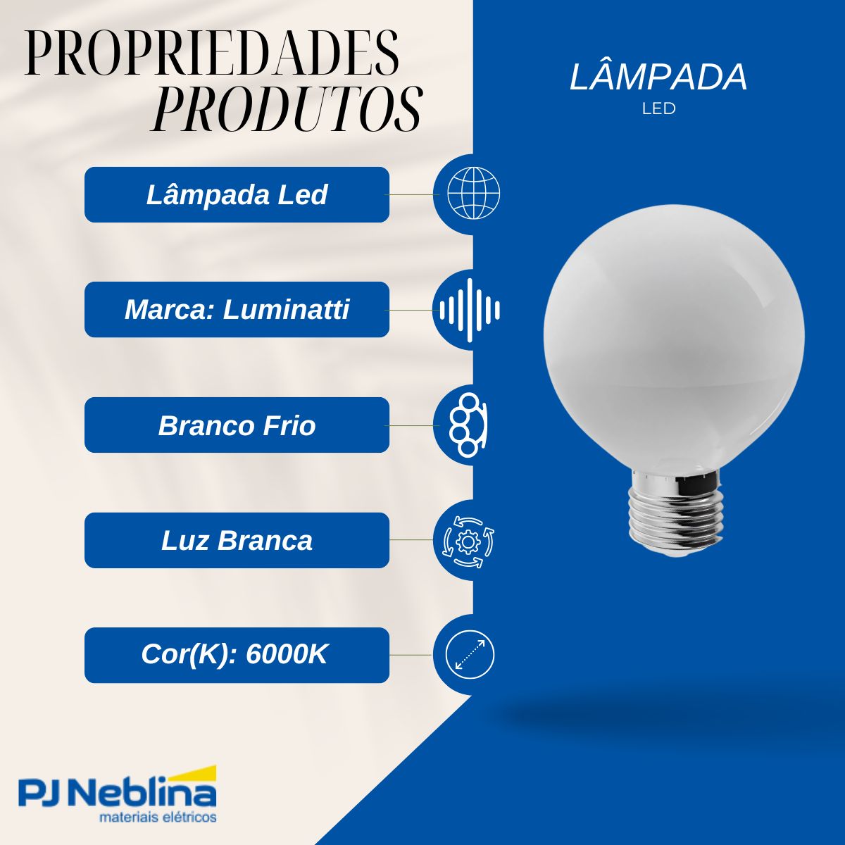 Lâmpada Led Globo G70 8W Bivolt E27 6000K Branco Frio Luz Branca 640Lm - Luminatti - Código Fabricante: LM182