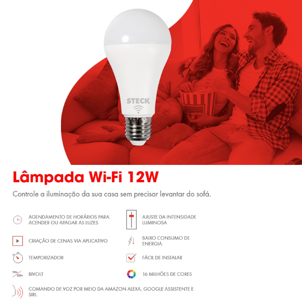 A Steck é uma marca referência no desenvolvimento e fornecimento de materiais elétricos para os ramos industrial,comercial e residencial. Possui mais de 50 linhas de itens fabricados com a mais alta qualidade e durabilidade, se tornando líder de vendas e a primeira indicação dos profissionais que trabalha, na área elétrica. A Steck te oferece a melhor solução para suas necessidades, a Lâmpada Led Inteligente A60 12W Bivolt RGB Wi-Fi Com Assistente.