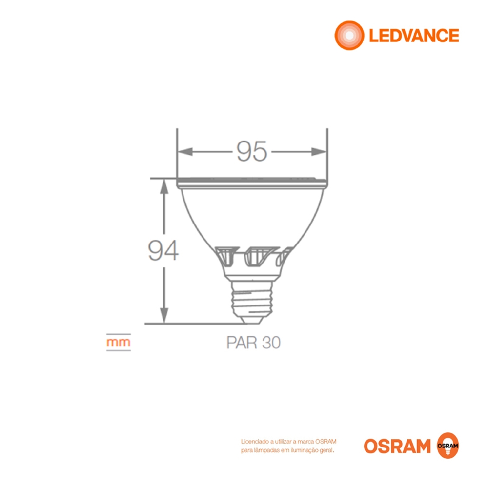 A Osram reforça sua posição como líder na fabricação de lâmpadas e luminárias conforme inovações são desenvolvidas, metas, revoluções, tendo como motivação fazer a luz continuar. Com um portifólio de produtos bem amplo e diverso com o maior nível de qualidade e tecnologia, juntamente a um design moderno. Com o nosso Lâmpada Led Par30 9,5W o nosso consumidor tem suas necessidades solucionadas com a maior funcionalidade.