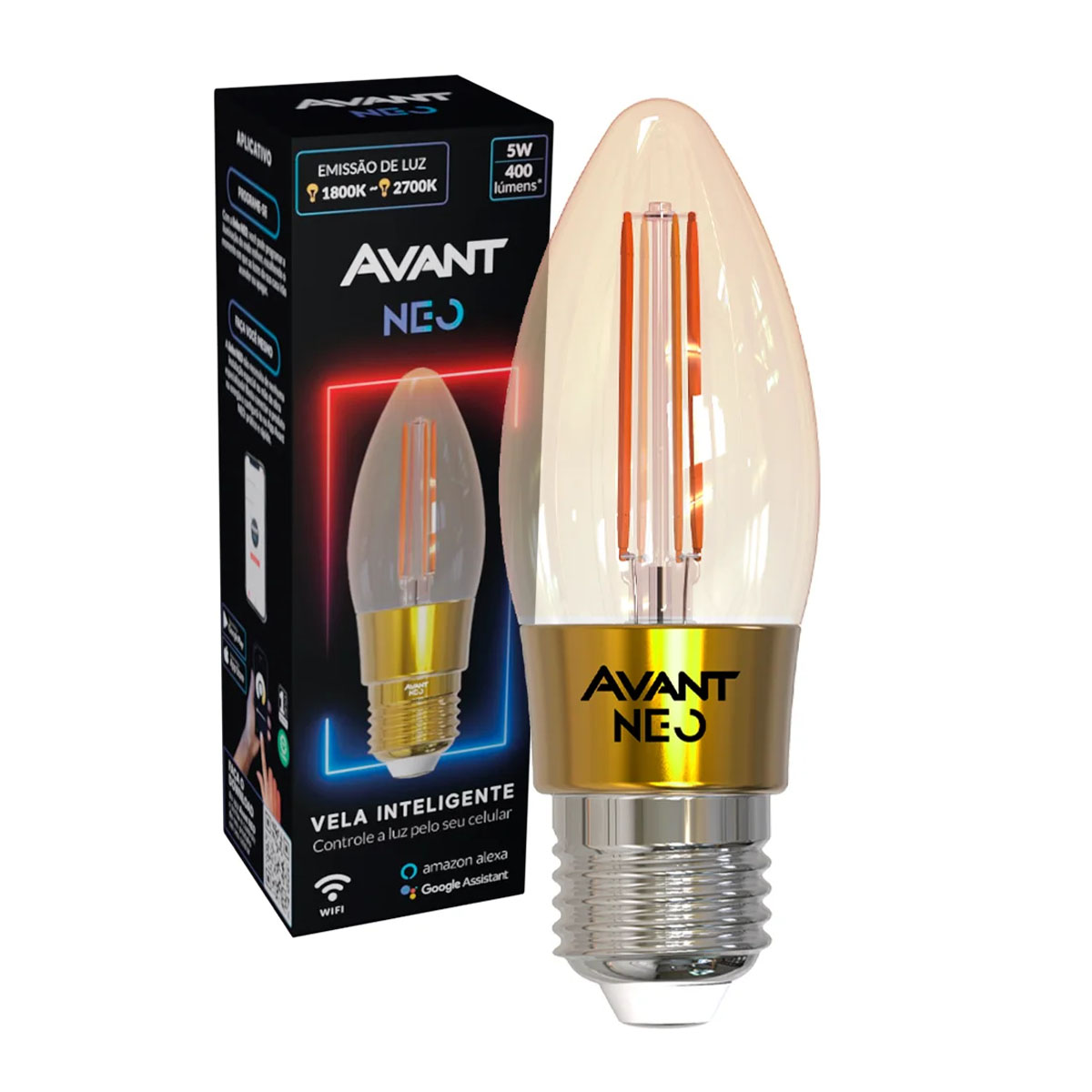 Lâmpada Led Vela 5W Bivolt E27 1800K-2700K Luz Amarela 400Lm Inteligente 110x35mm Avant