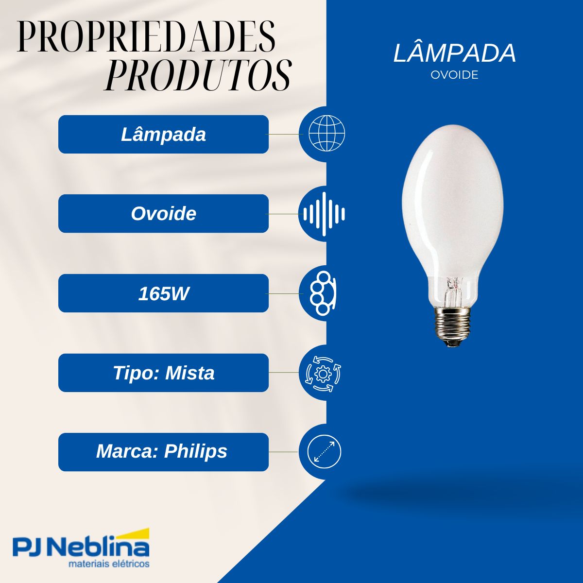 Lâmpada Mista Ovoide 165W 220V E27 3600K Branco Quente - Philips - Código Fabricante: 928601008912