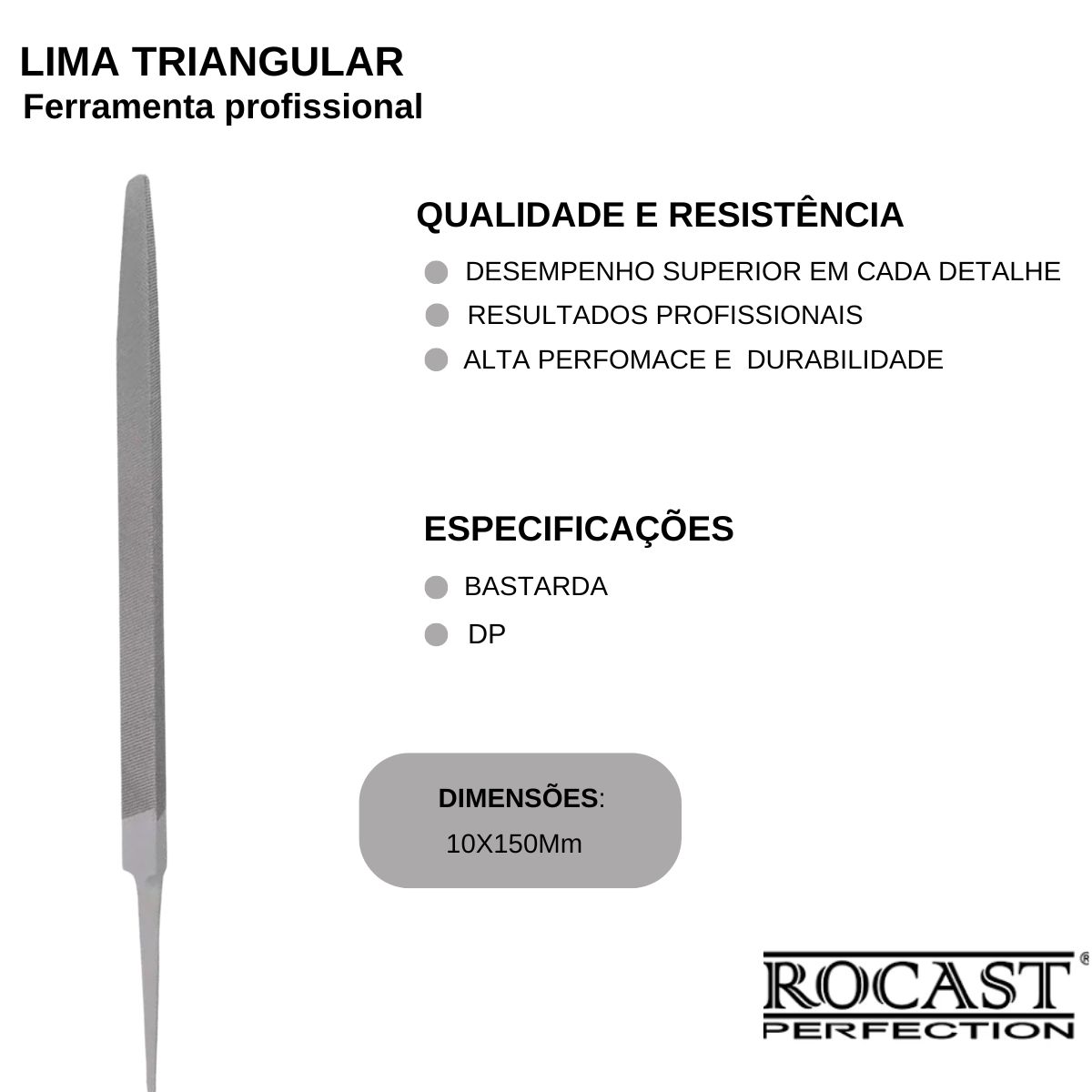Lima Triângulo Bastarda Dp 10X150Mm 390051 Rocast
