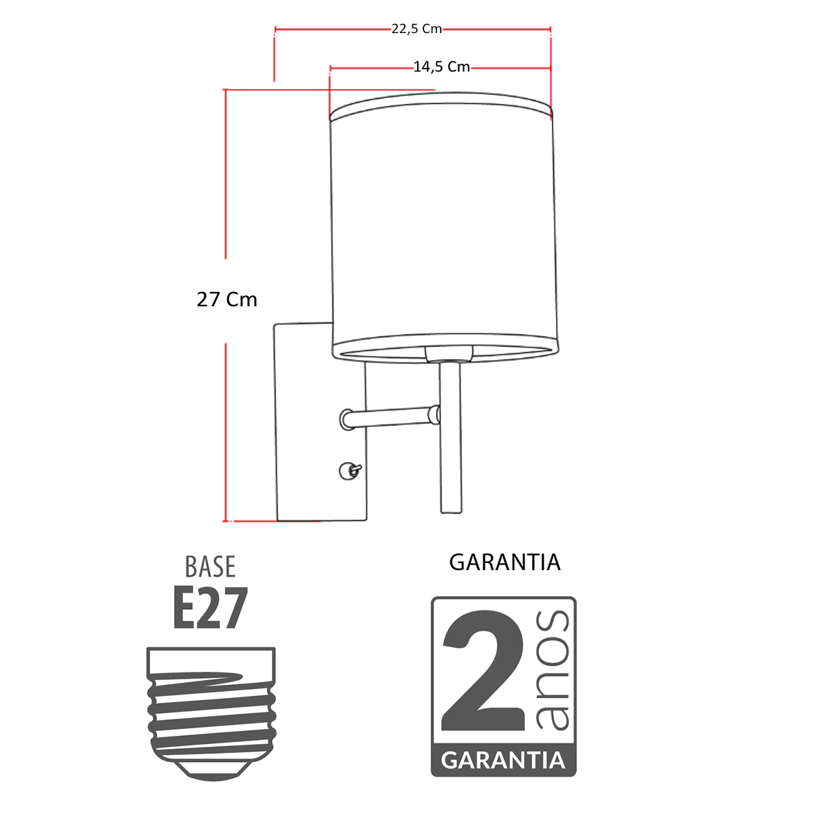 A luminária possui cúpula em Polímero Termoplástico na cor branca e canopla com acabamento em aço na cor cinzametálico.