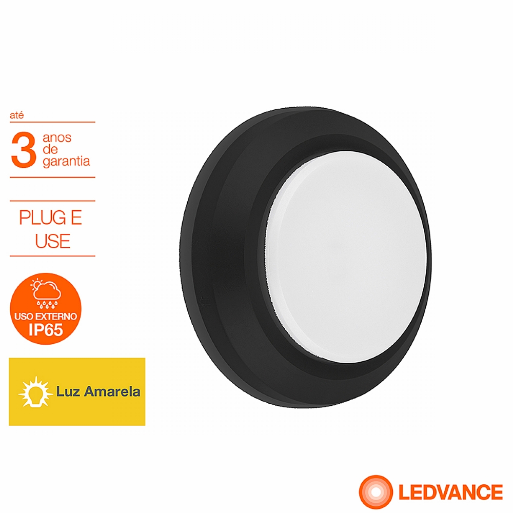 Luminária Arandela Led Bivolt Redondo Preto 3W 3000K Luz Amarela Decoled Ledvance