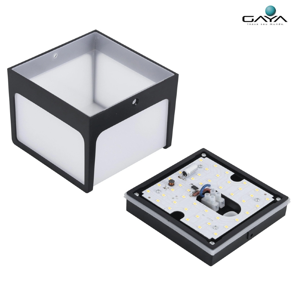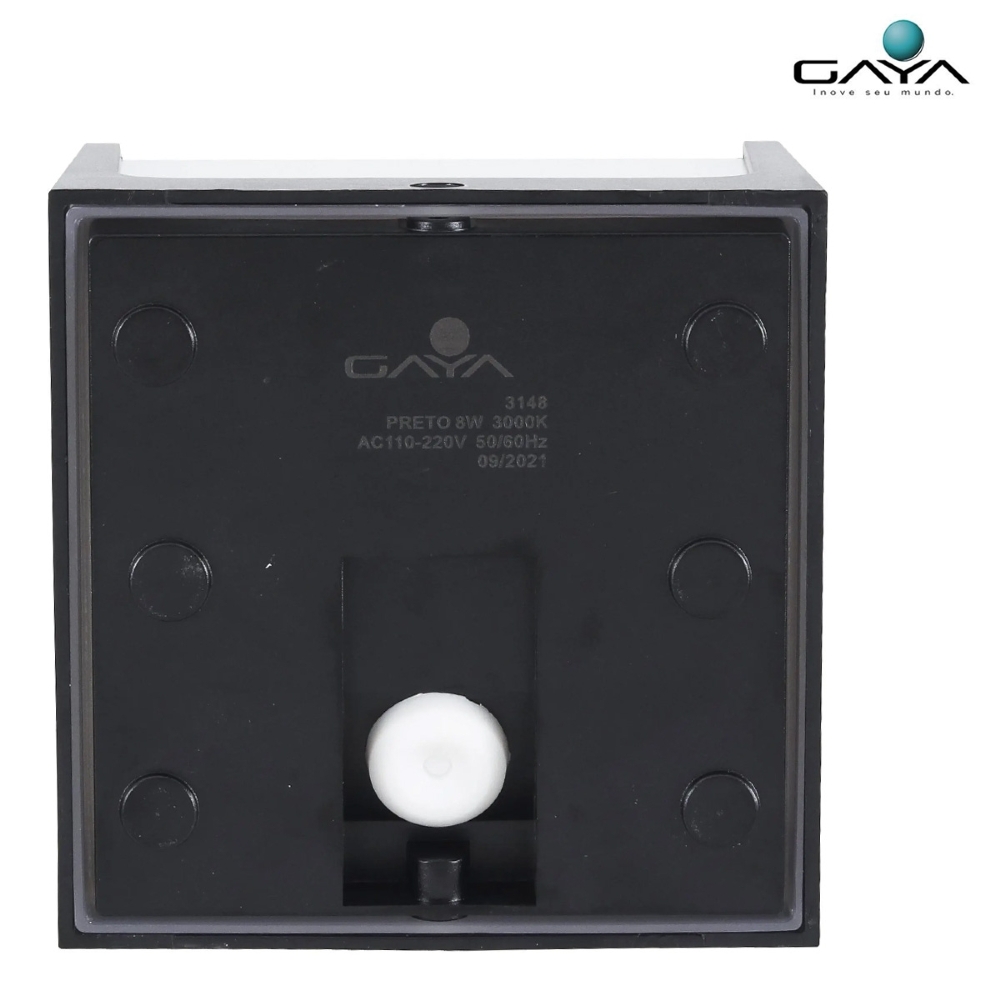Luminária Arandela Led Hamsa Preto 8W Bivolt 3000K Luz Amarela 550Lm 120X120X30mm 3148 Gaya